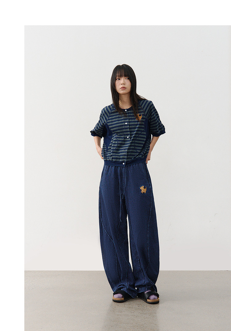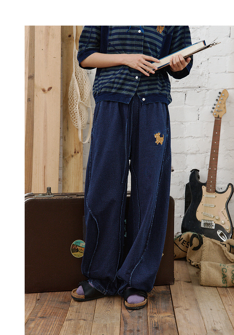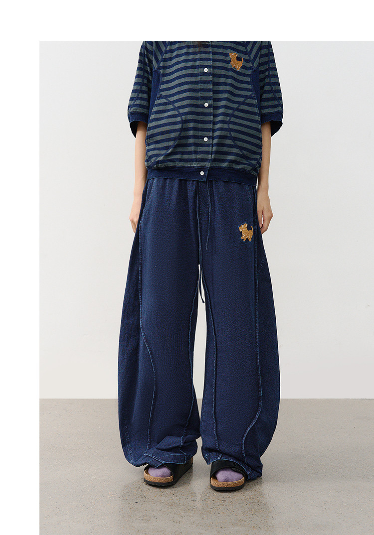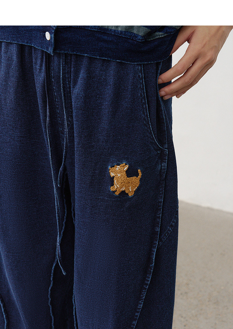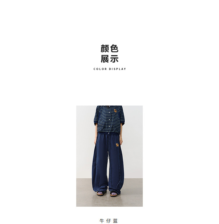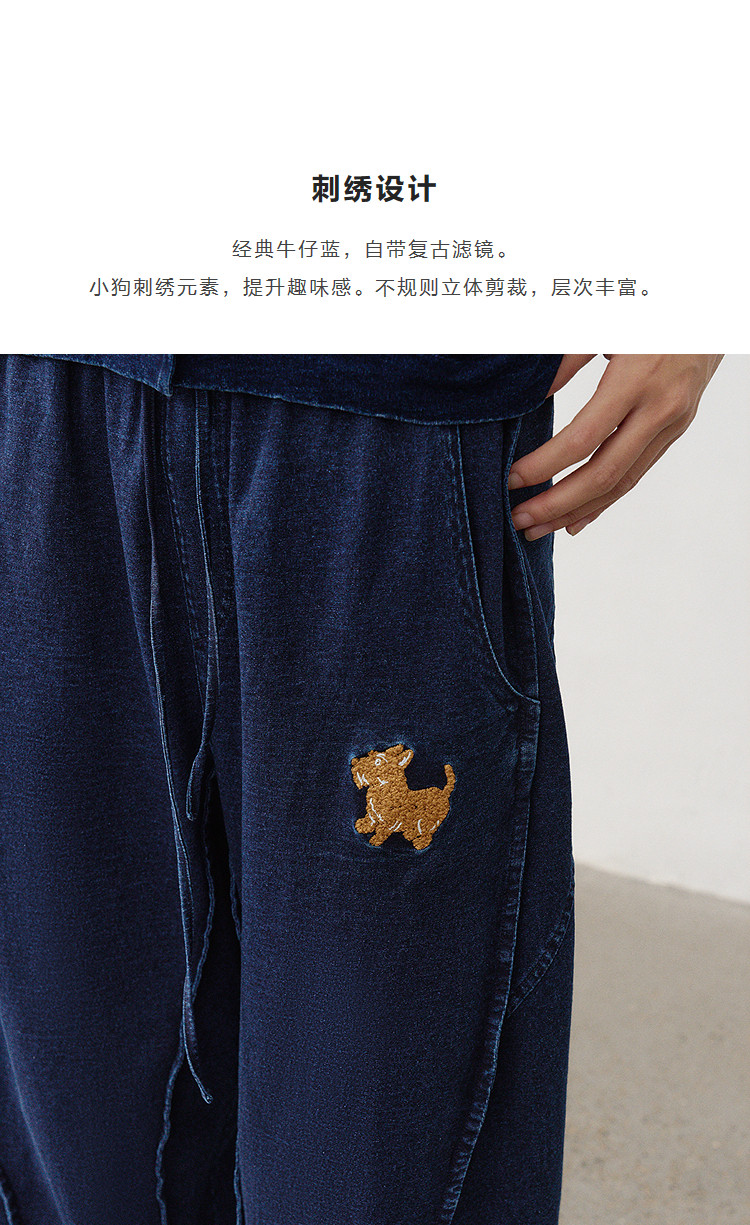 半圆/C66130277/水洗松紧腰绣花休闲裤