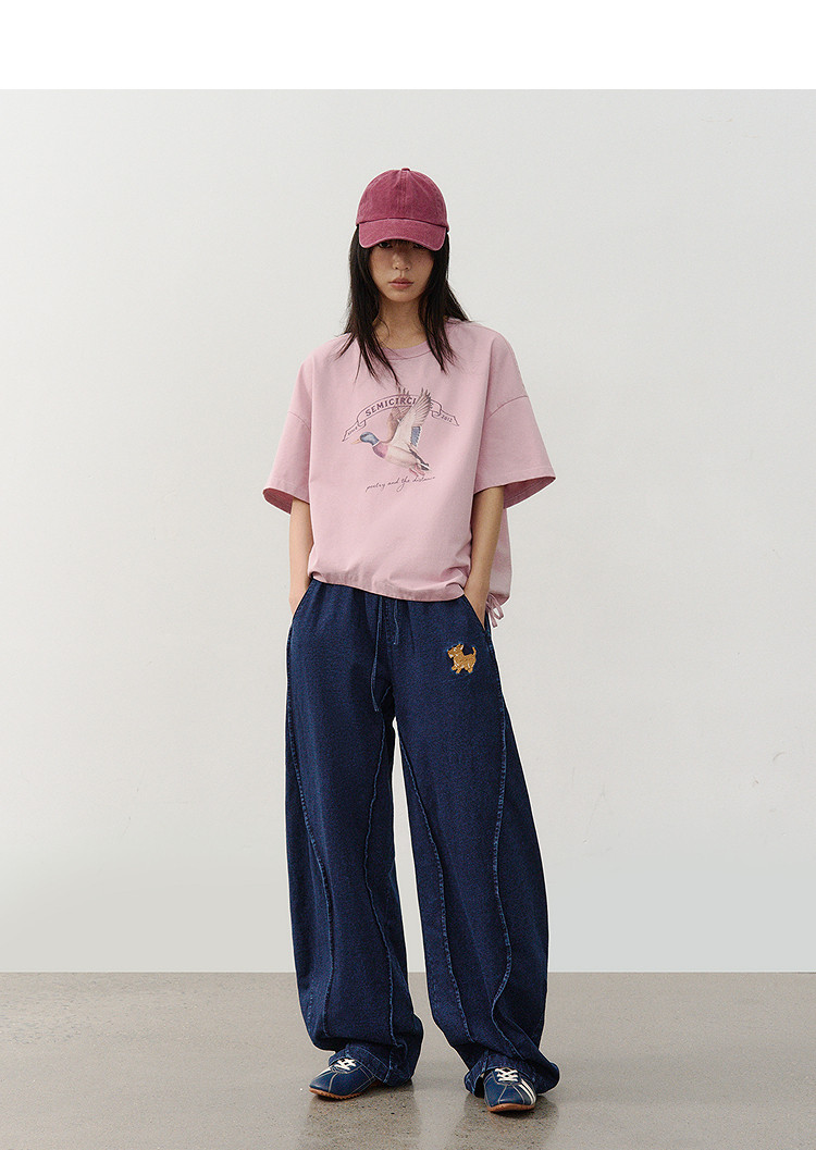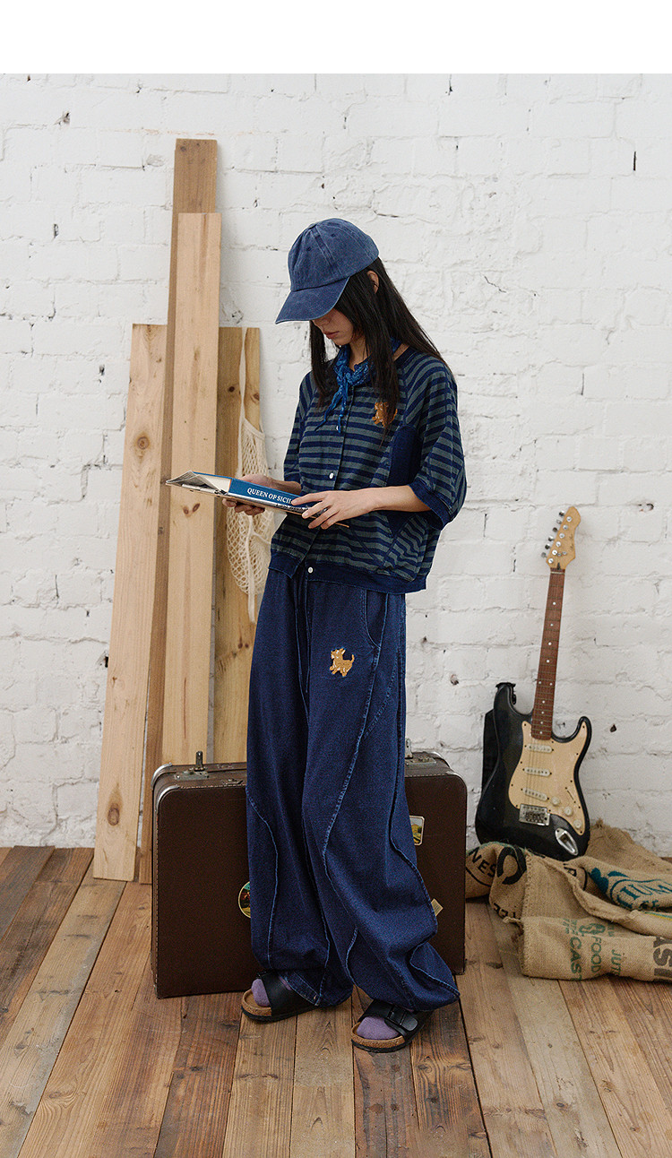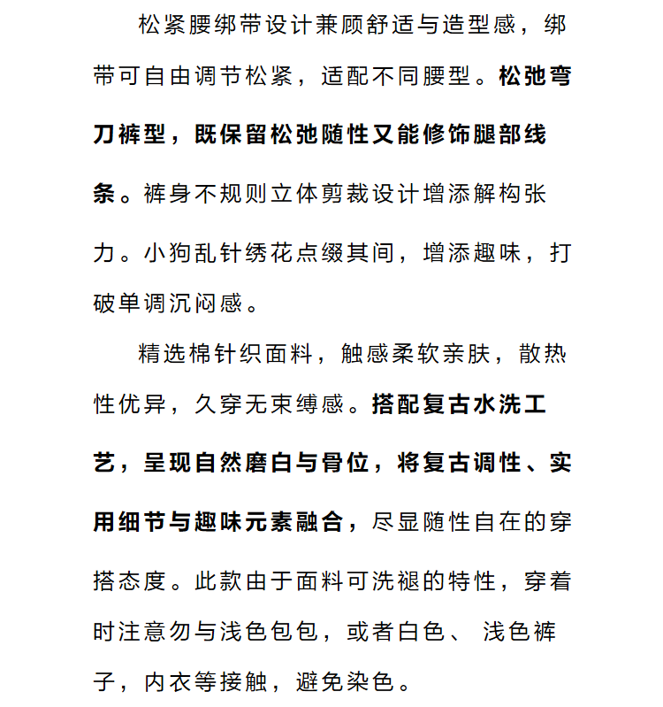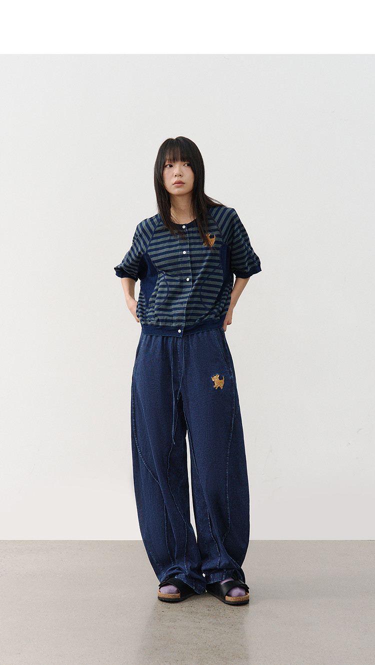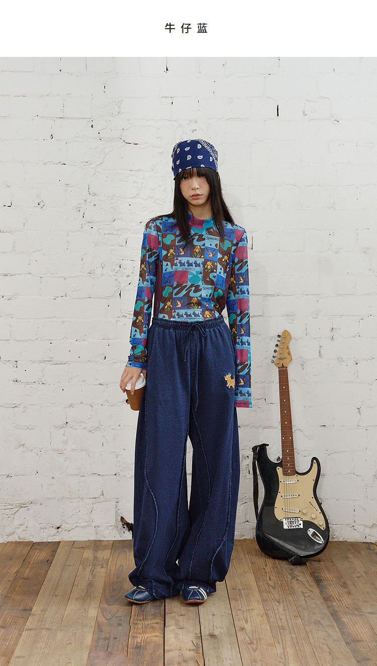 半圆/C66130277/水洗松紧腰绣花休闲裤