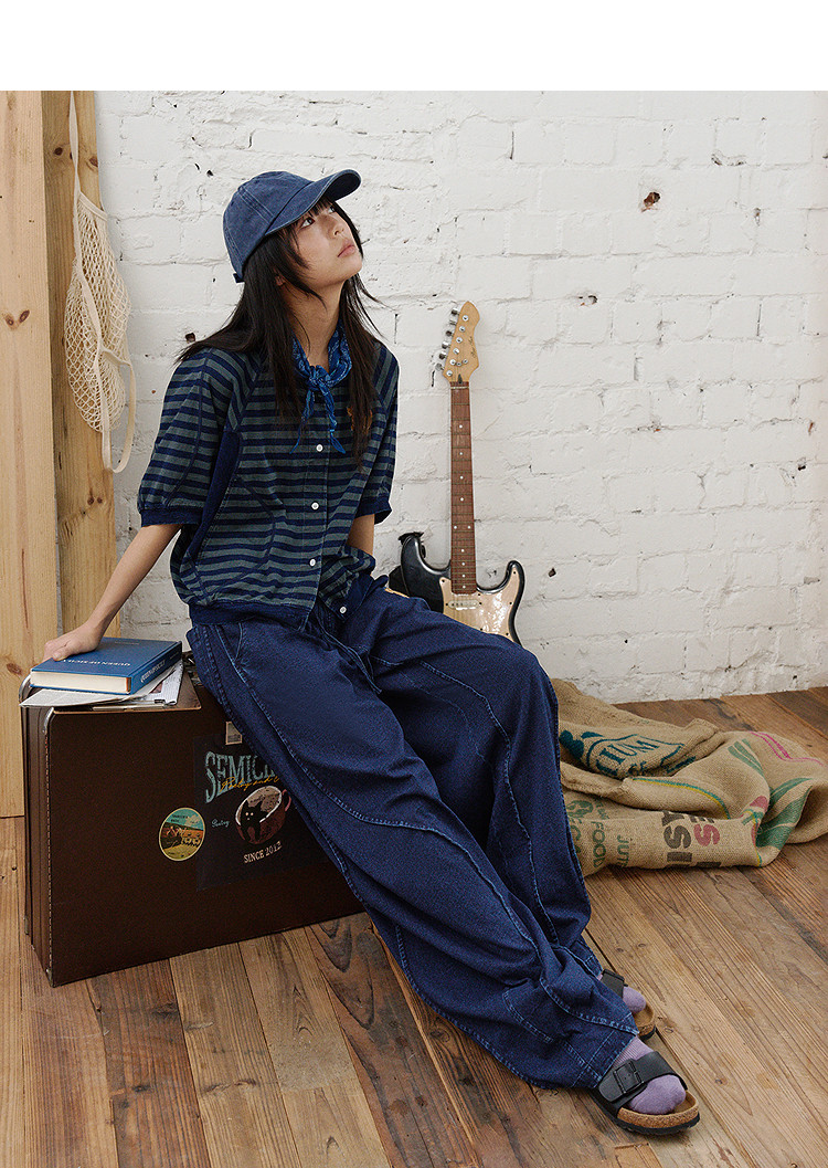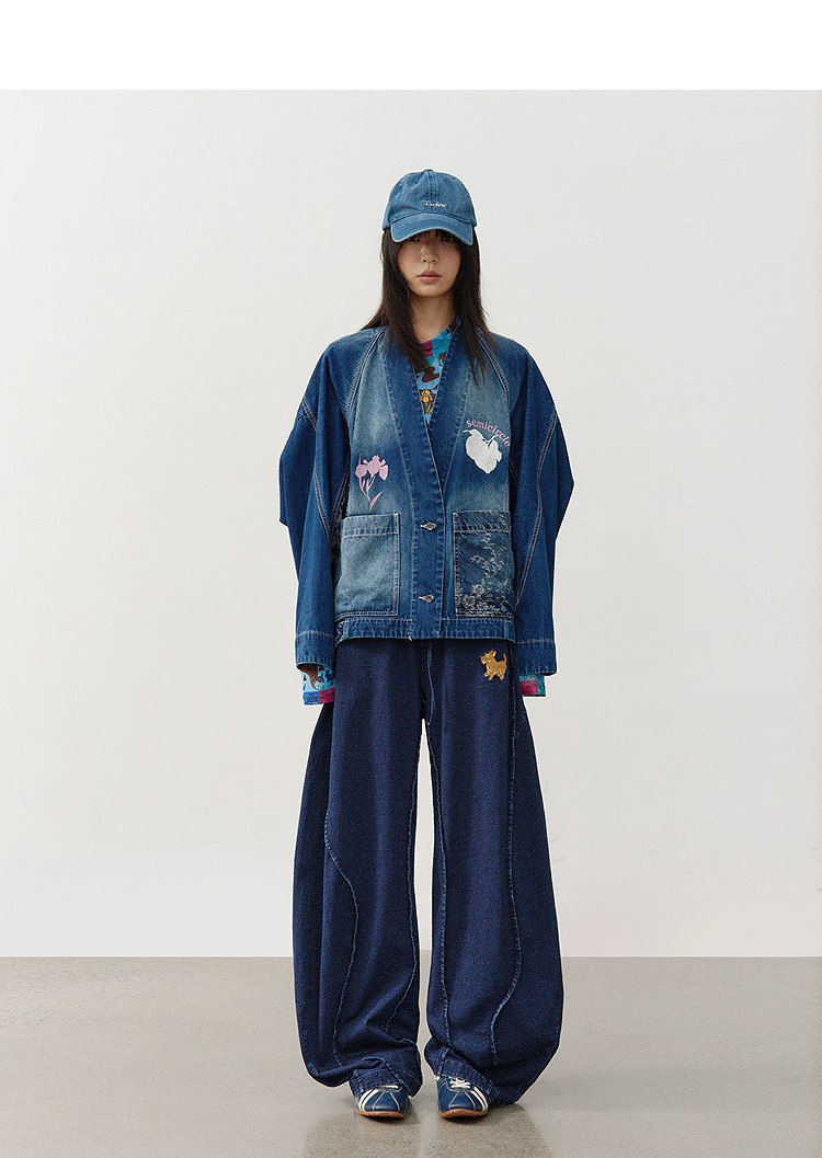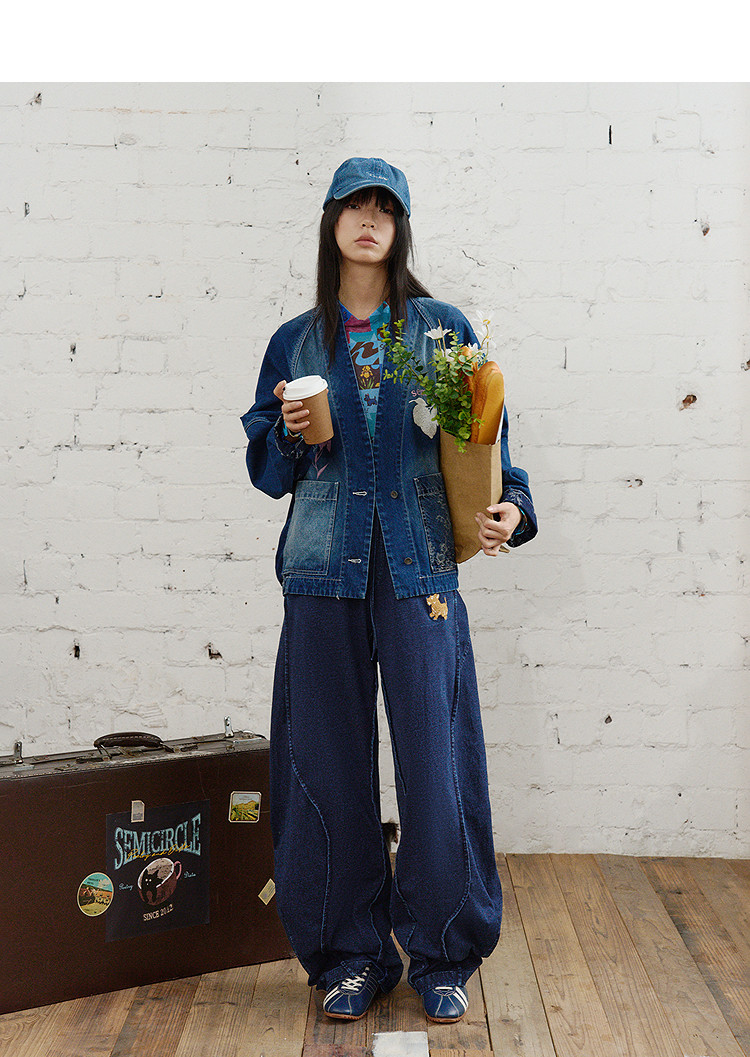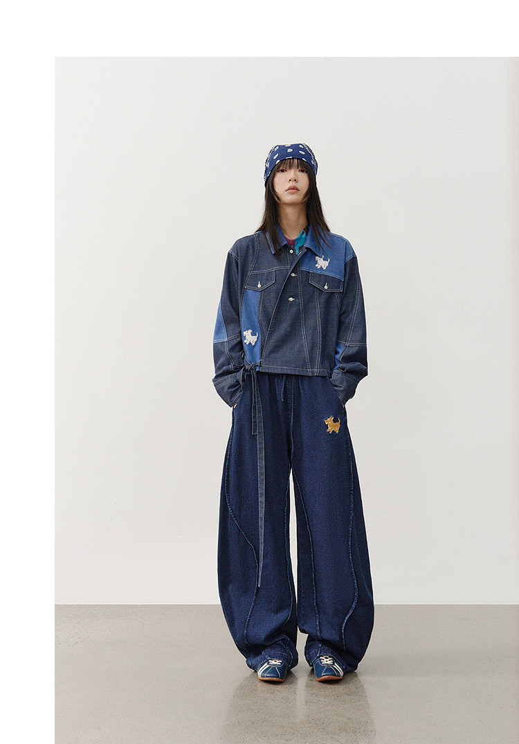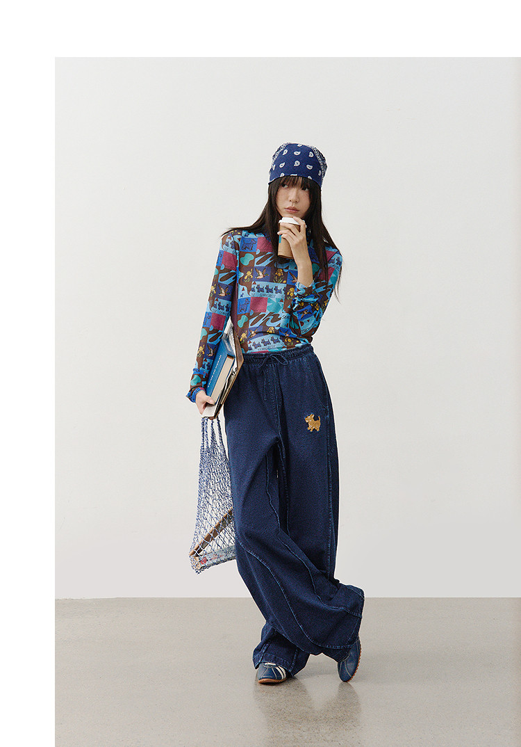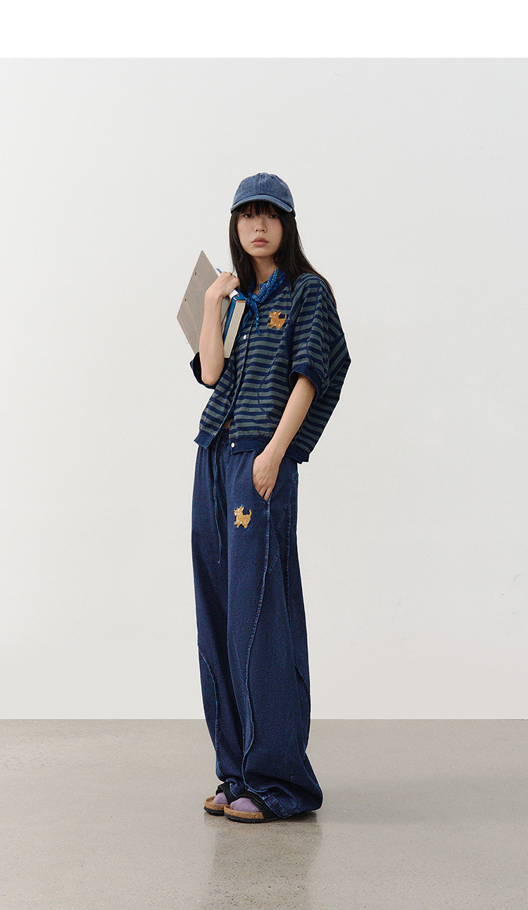半圆/C66130277/水洗松紧腰绣花休闲裤