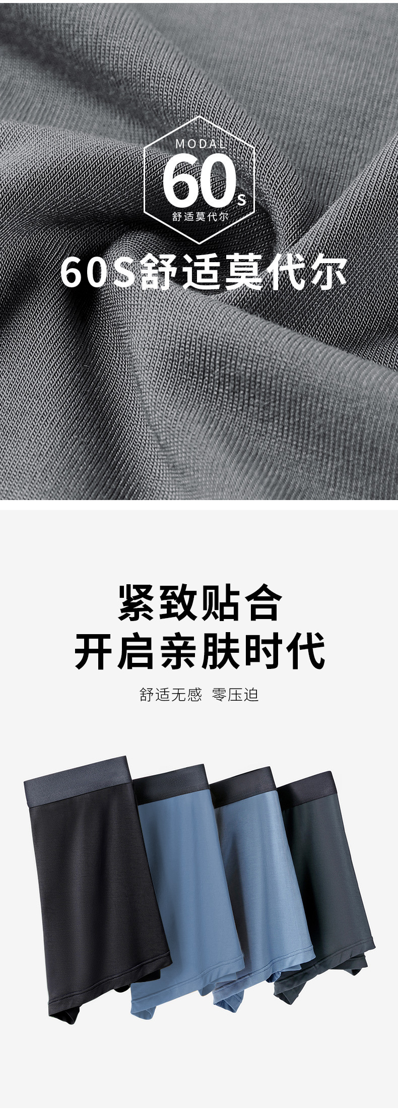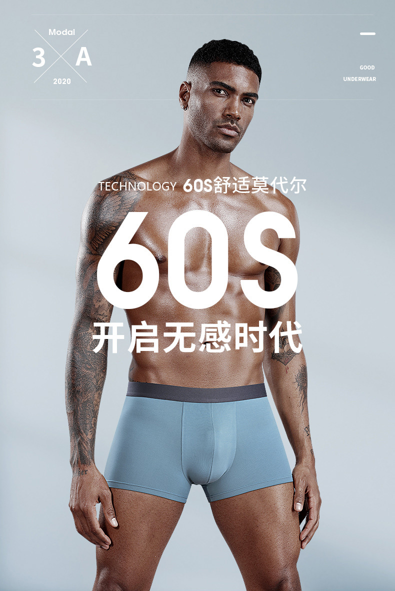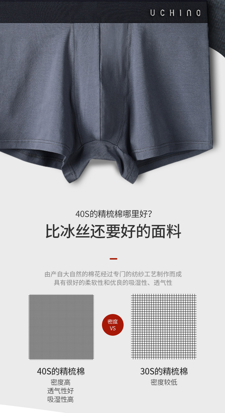 内野纯棉/莫代尔男士四角内裤精梳棉纯棉内裤