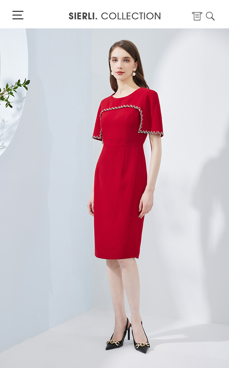 NF8N9斯尔丽瑟俪商场同款2023夏季新款精致钉珠修身显瘦小礼服连衣裙