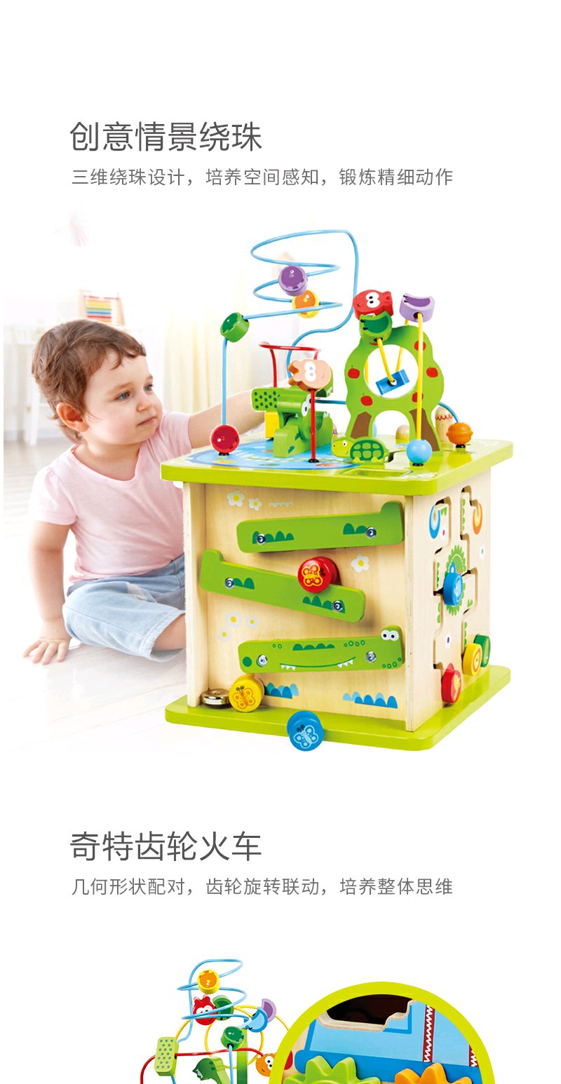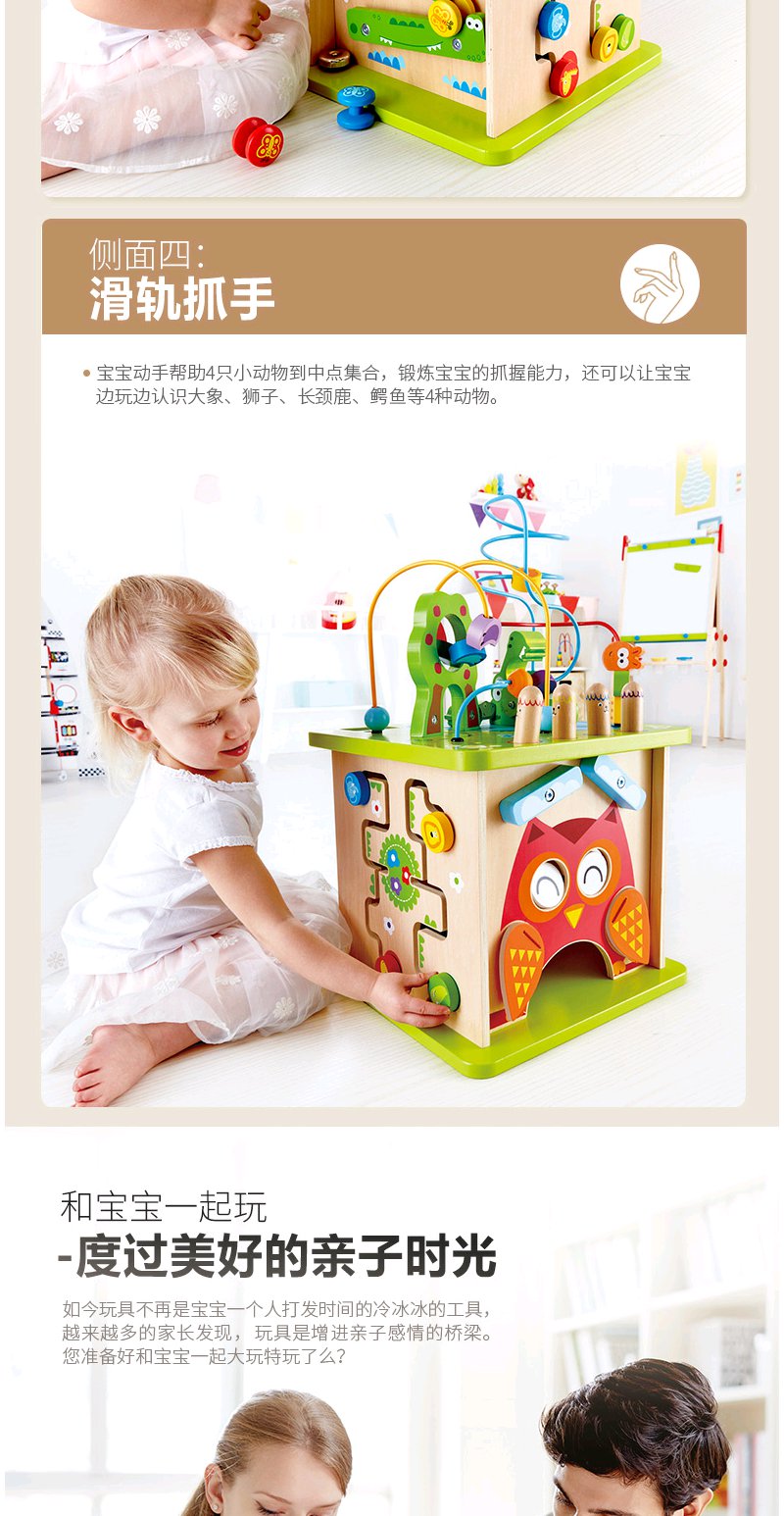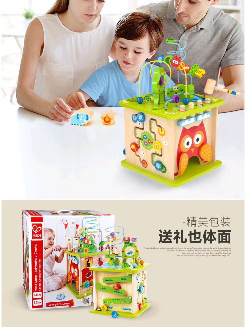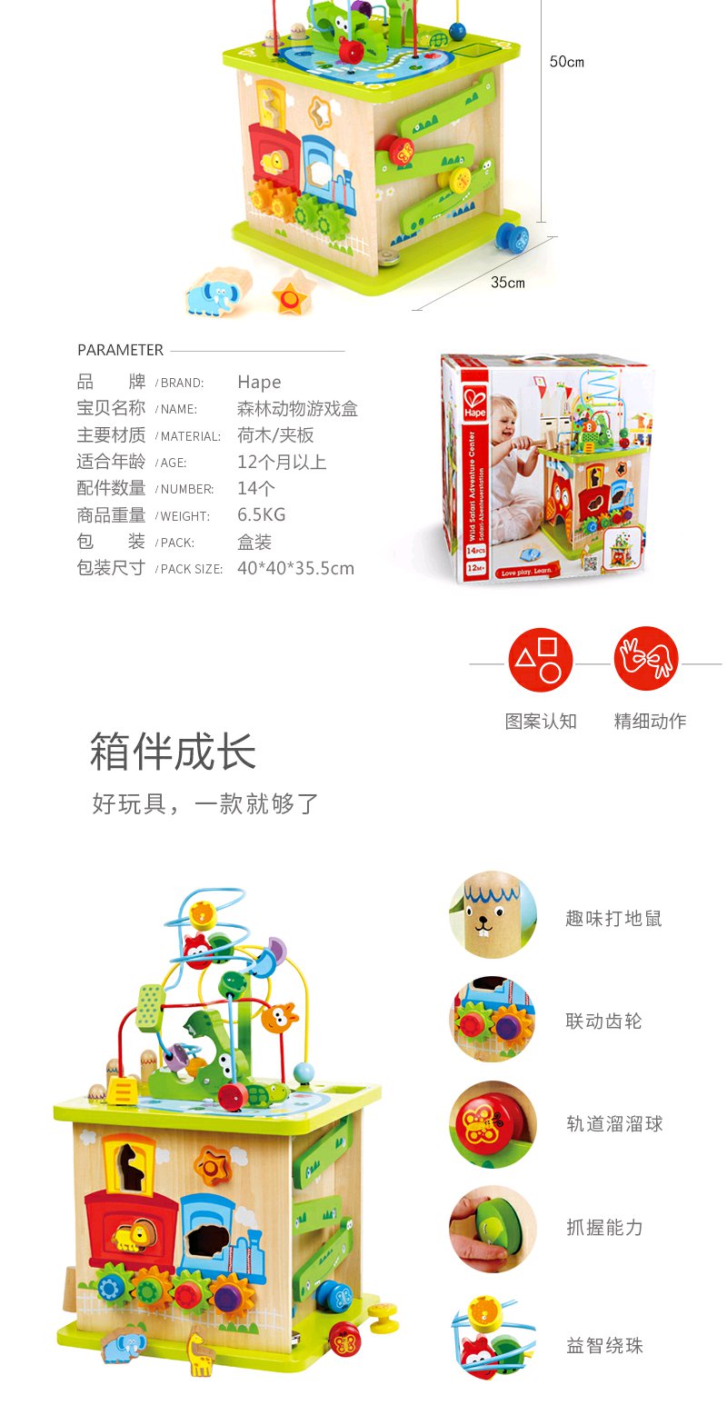 Hape森林动物游戏盒多功能绕珠一岁宝宝积木婴儿串珠儿童益智玩具开心农场