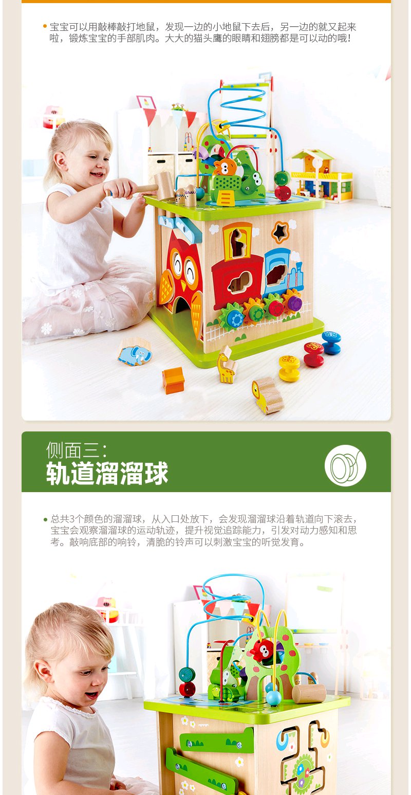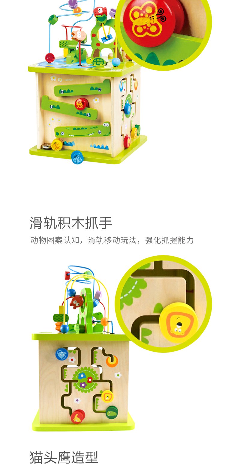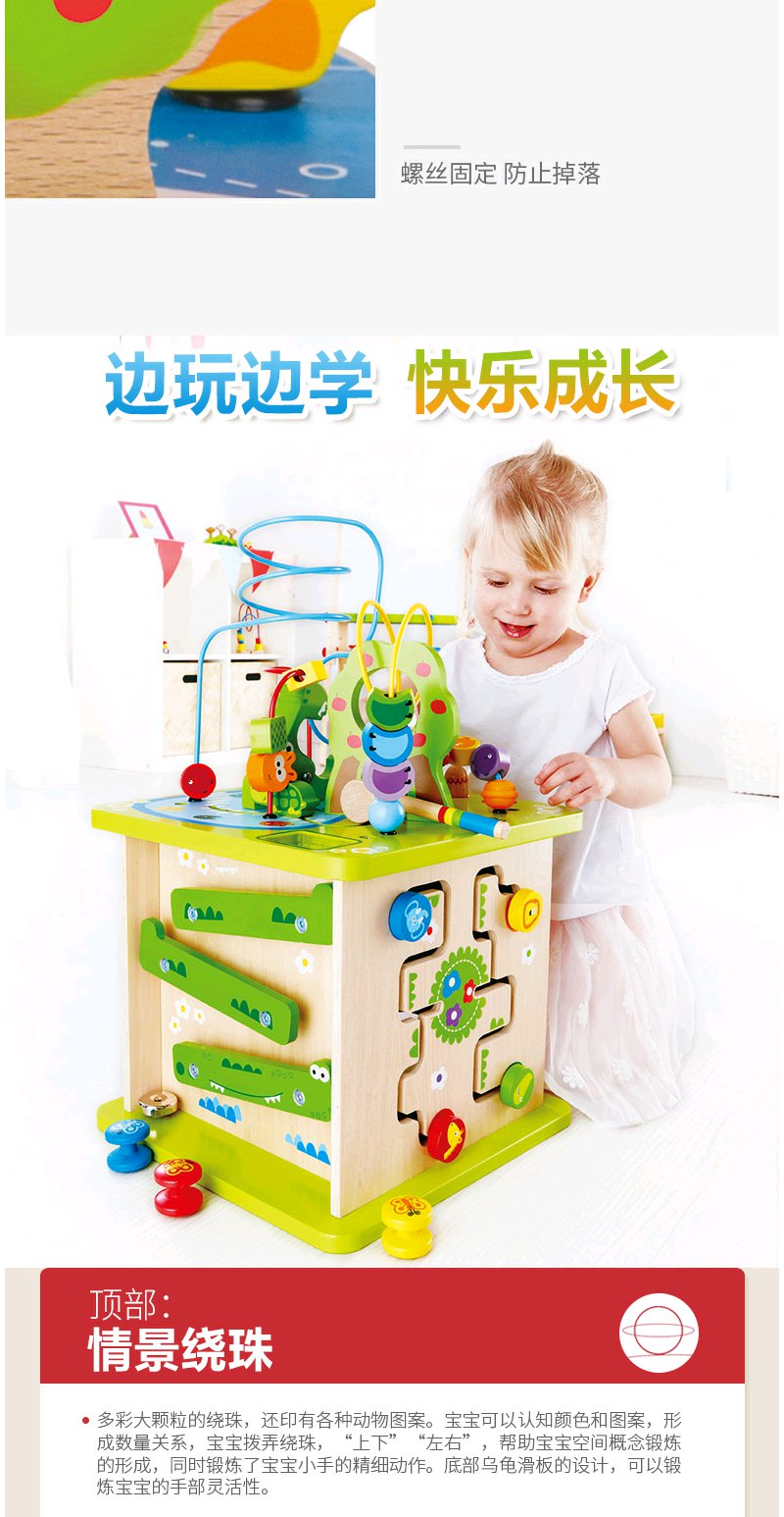 Hape森林动物游戏盒多功能绕珠一岁宝宝积木婴儿串珠儿童益智玩具开心农场