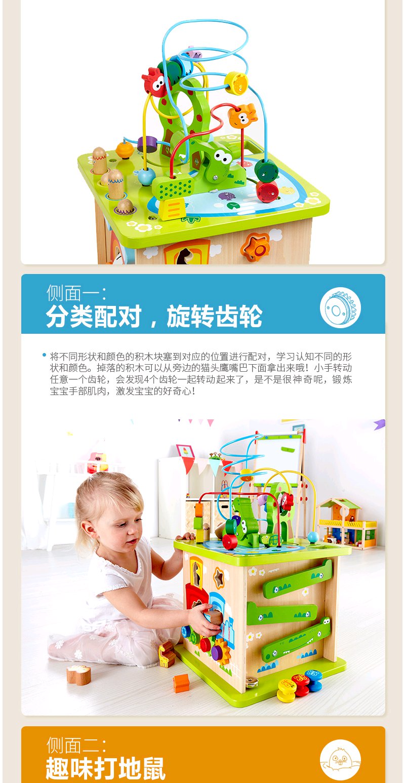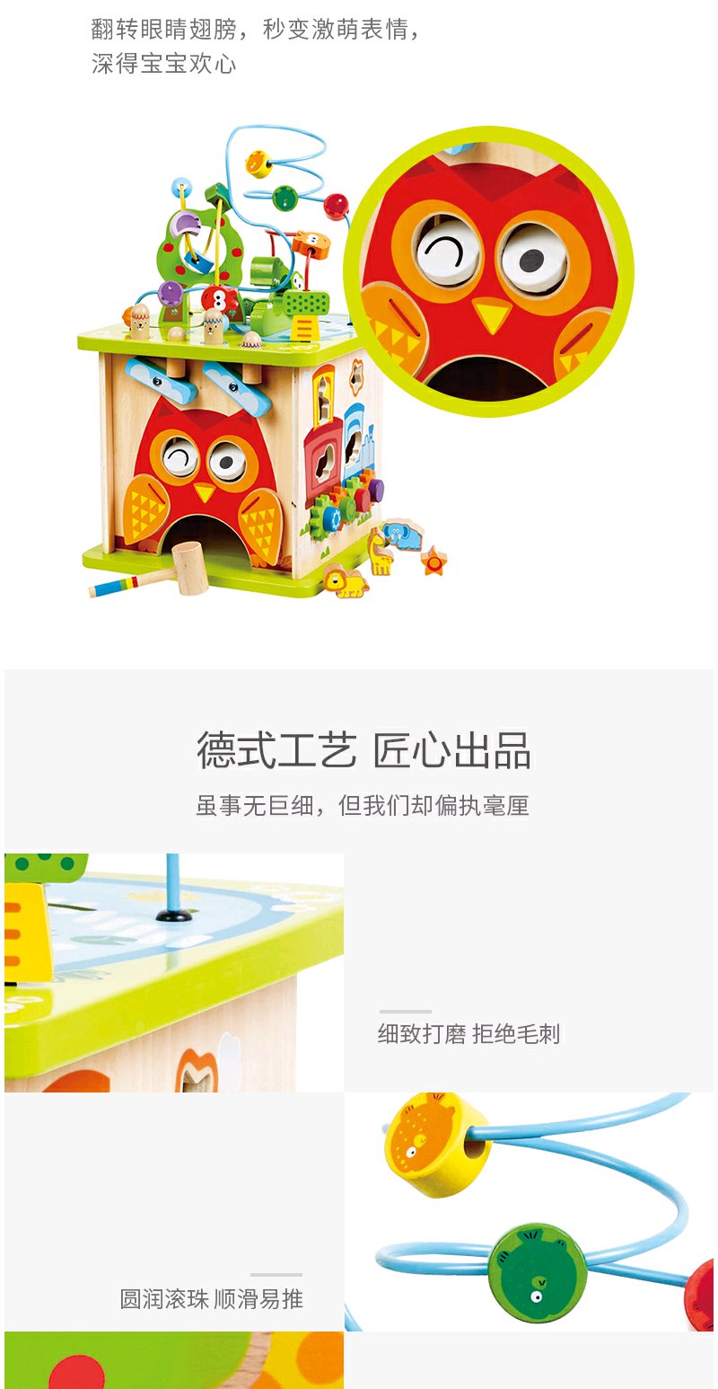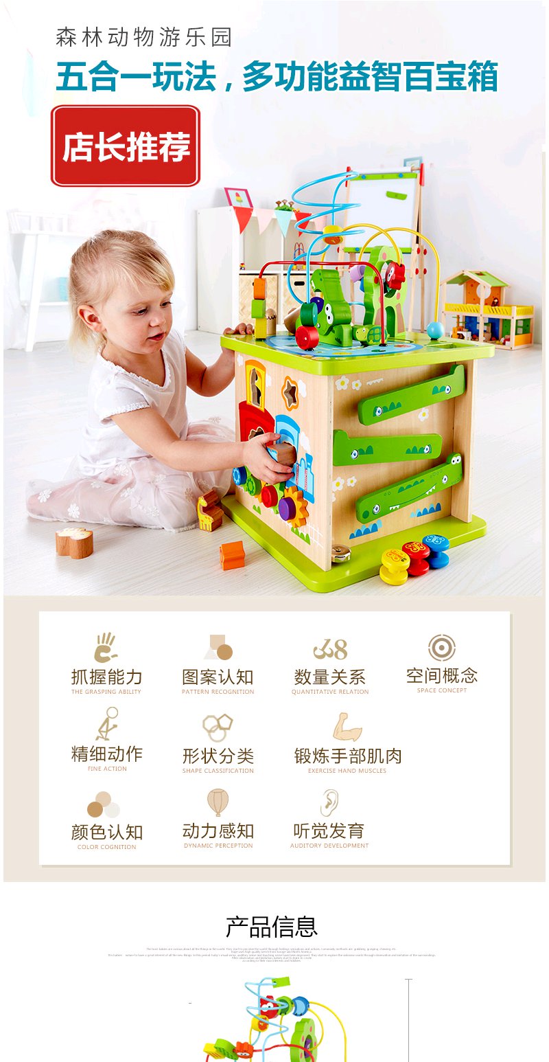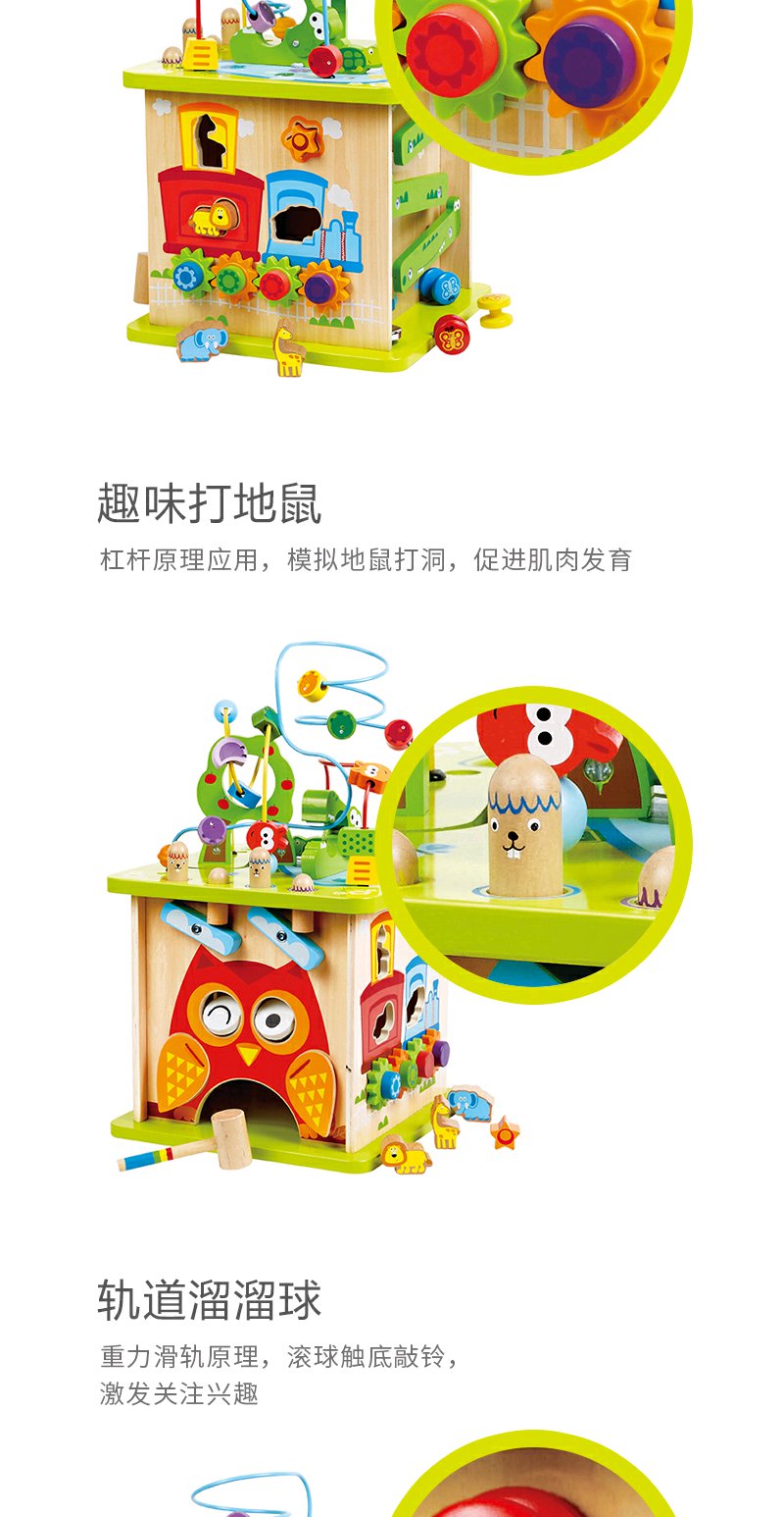 Hape森林动物游戏盒多功能绕珠一岁宝宝积木婴儿串珠儿童益智玩具开心农场