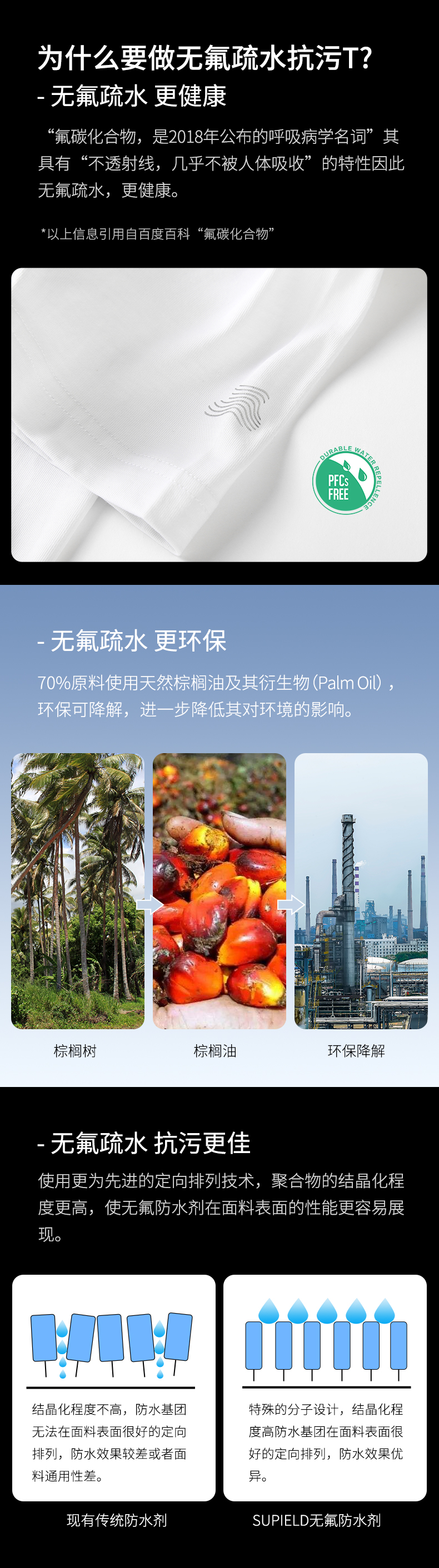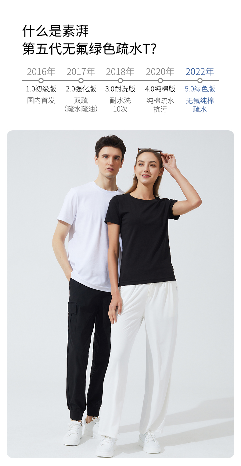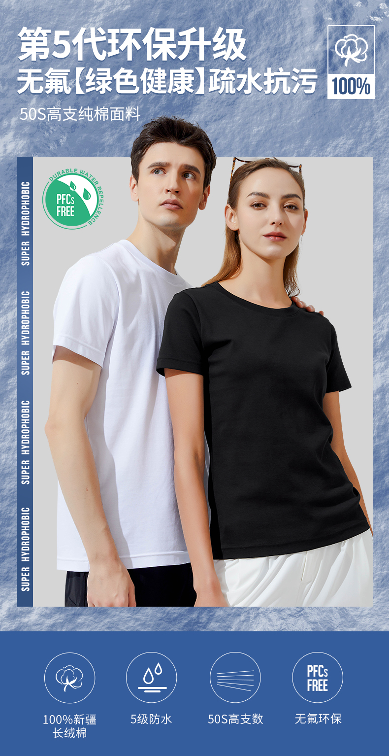 Supield素湃第5代纯棉无氟疏水抗污T恤男女夏季亲肤透气防水短袖T