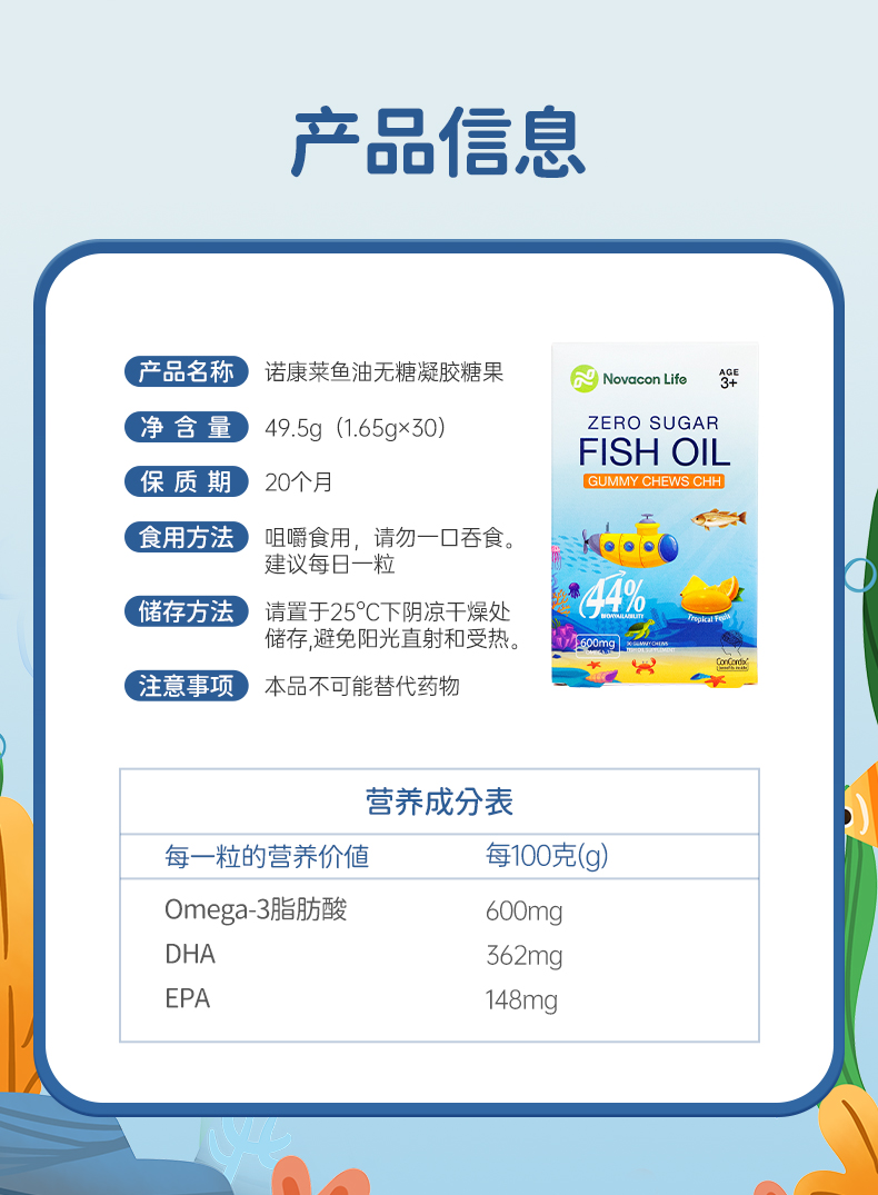 【迪安】诺康莱鱼油无糖凝胶糖果30粒(成人)