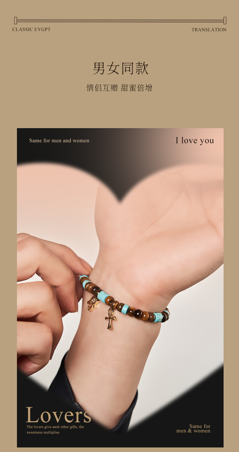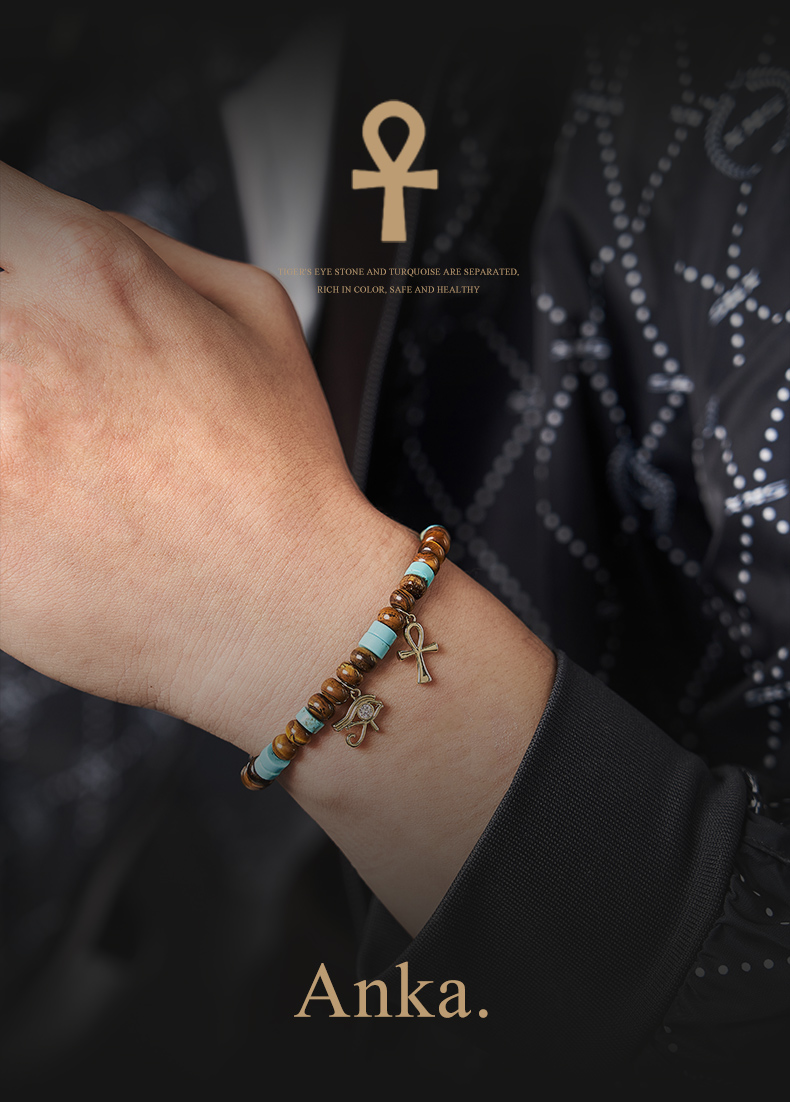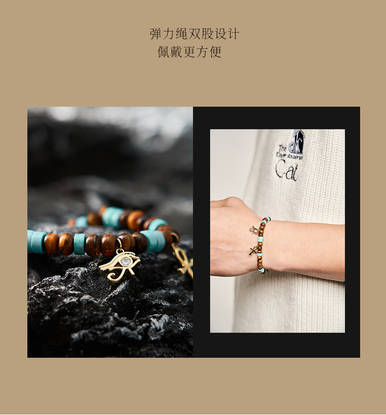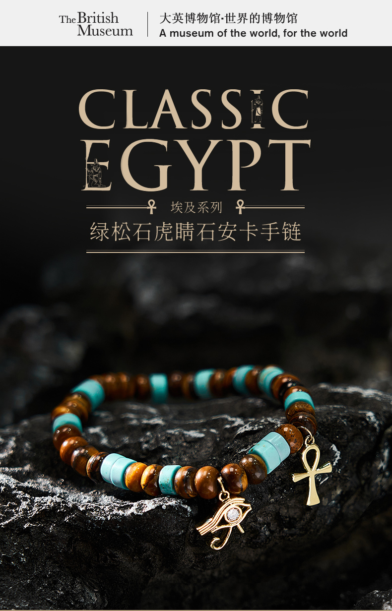 大英博物馆埃及系列 男女通用绿松石虎睛石 荷鲁斯之眼 安卡 手链首饰礼盒
