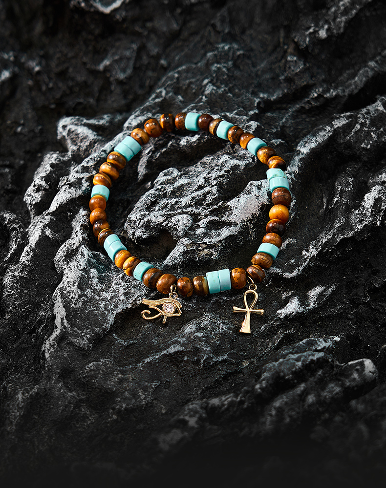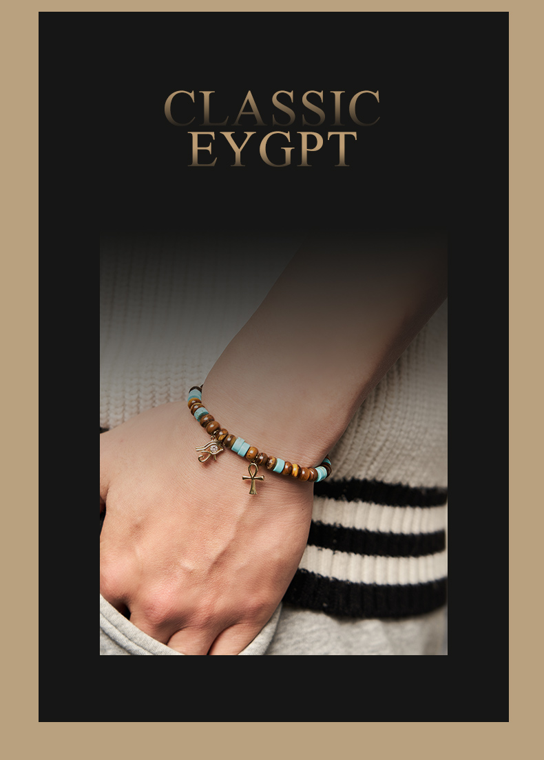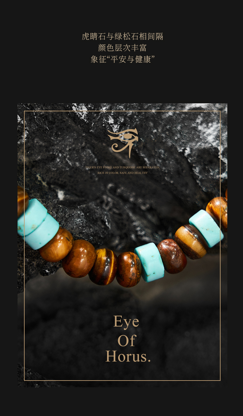 大英博物馆埃及系列 男女通用绿松石虎睛石 荷鲁斯之眼 安卡 手链首饰礼盒