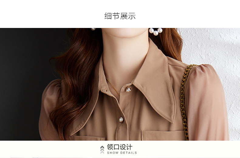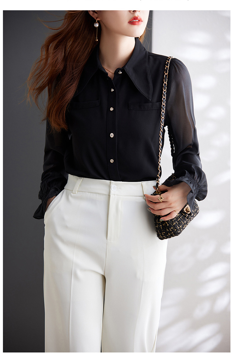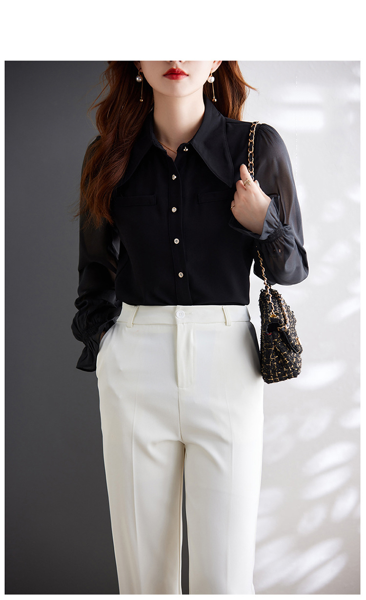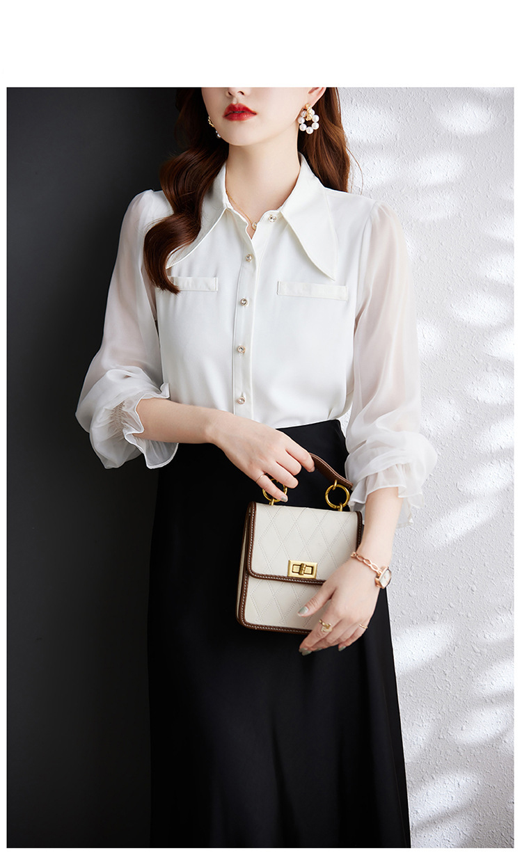 时尚洋气,网纱灯笼袖衬衫女春秋设计感小众长袖职业装女上衣MGG-Q6676