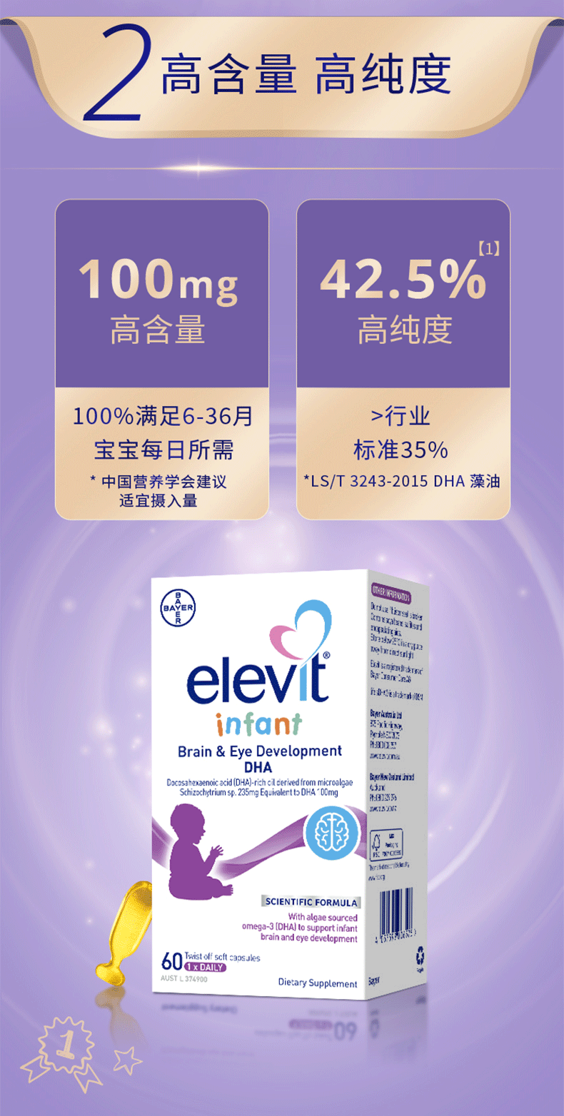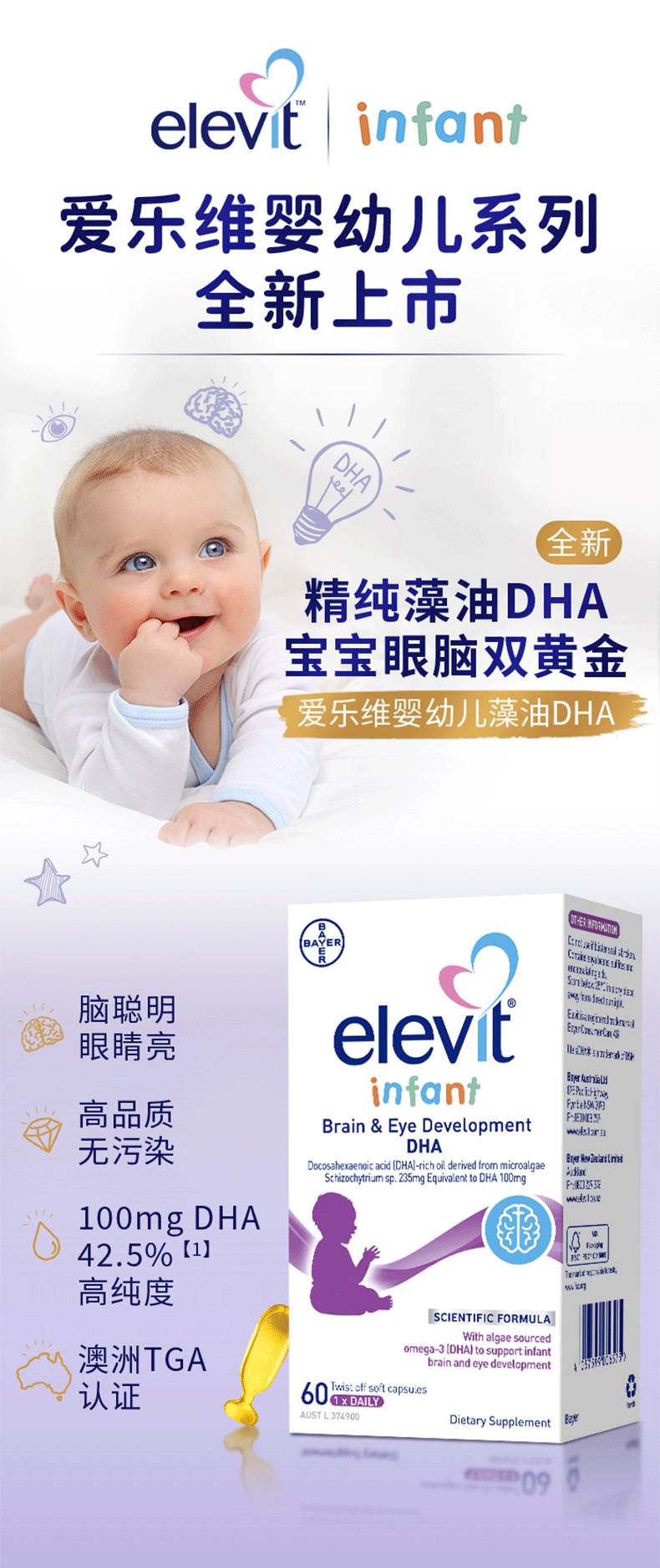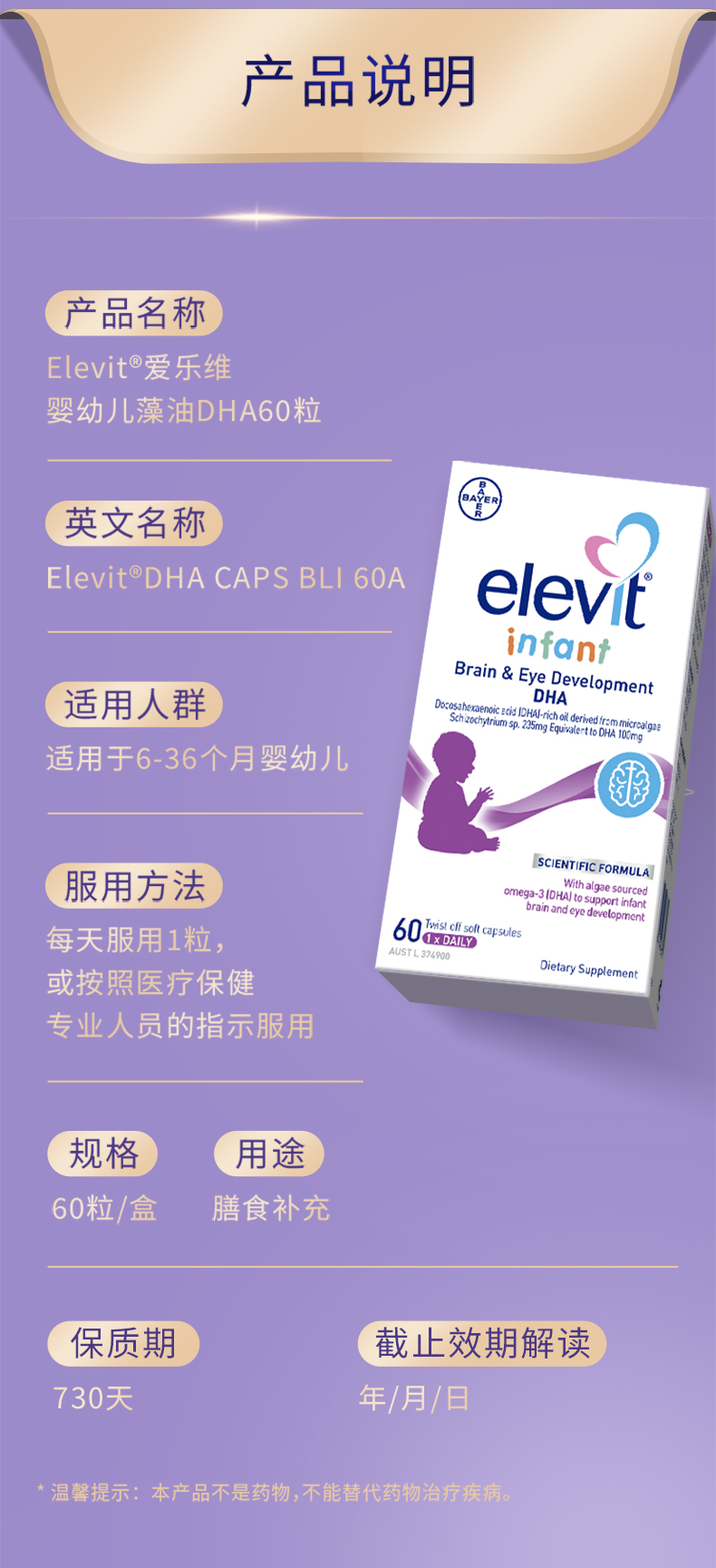 Elevit爱乐维婴幼儿藻油DHA胶60粒