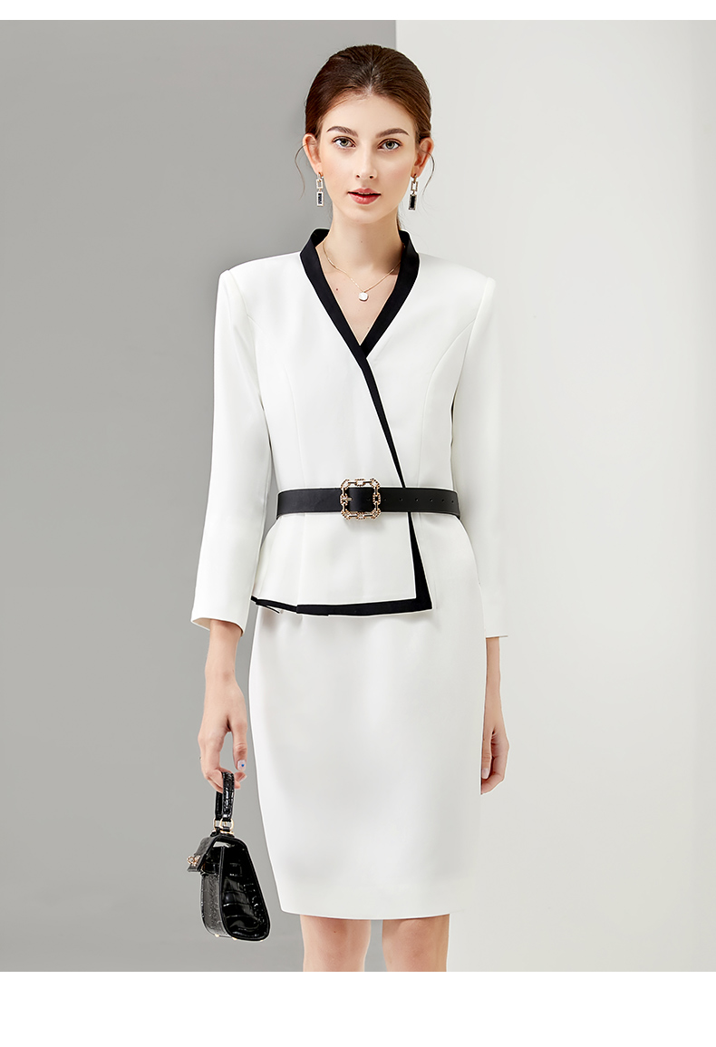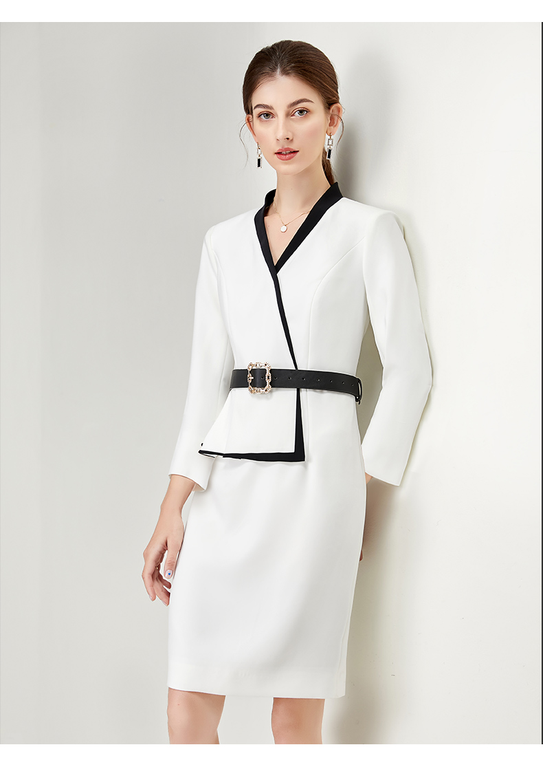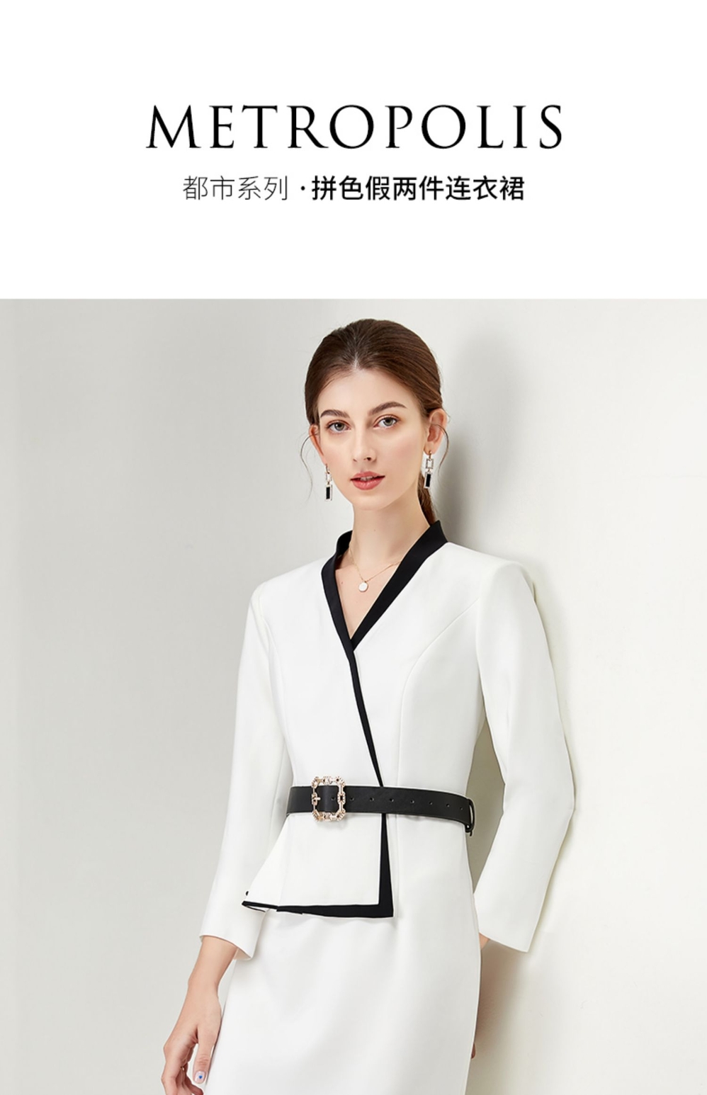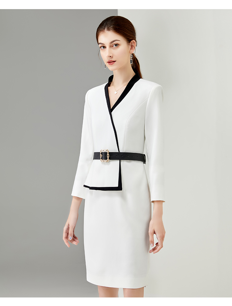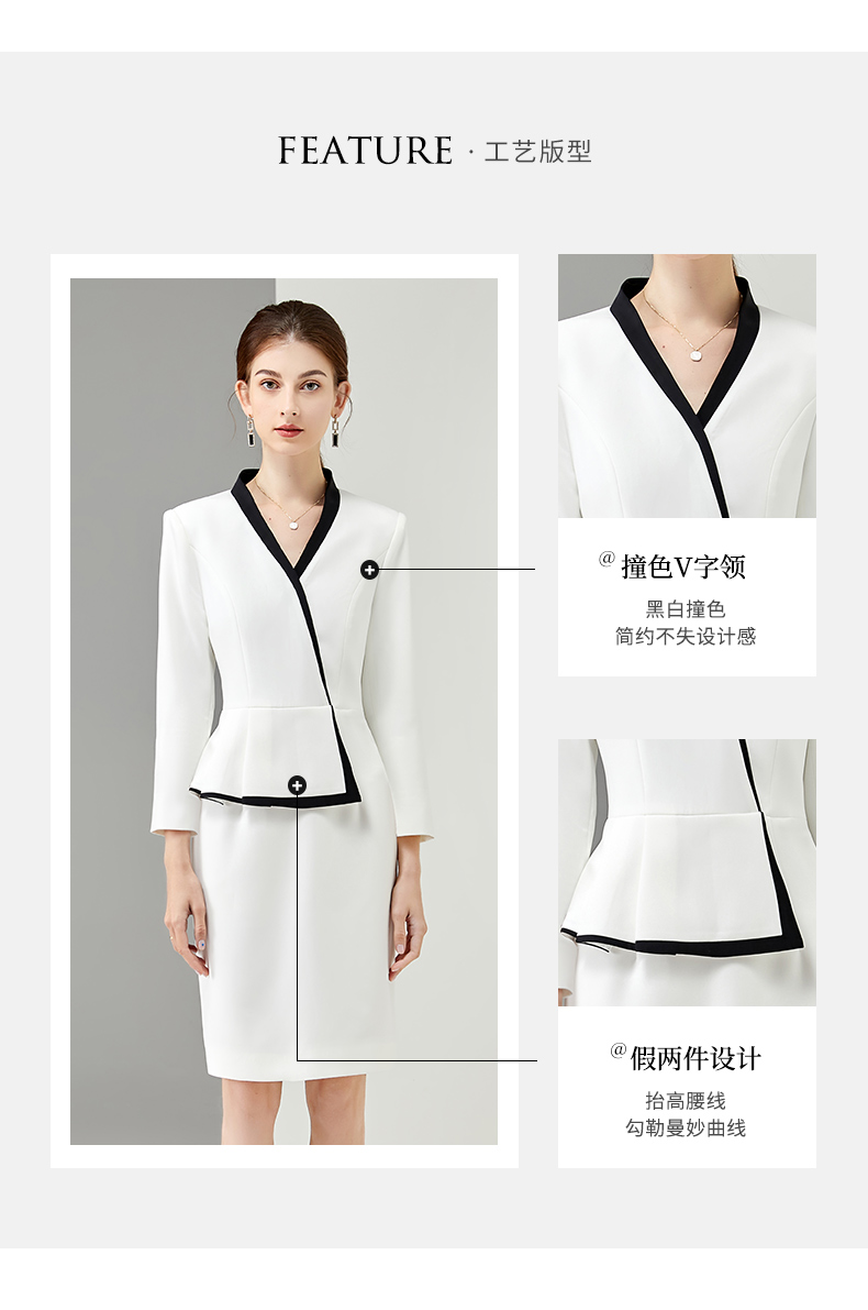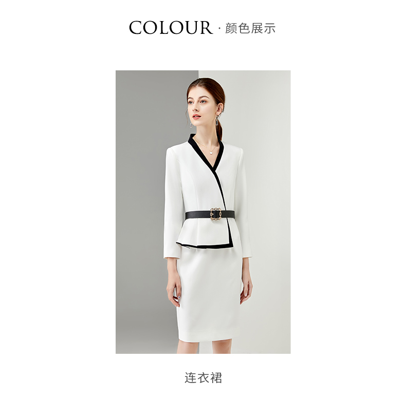 IWY/高端职业装连衣裙白色气质女神范前台美容师售楼部工作服套装Q12301