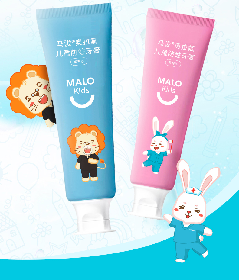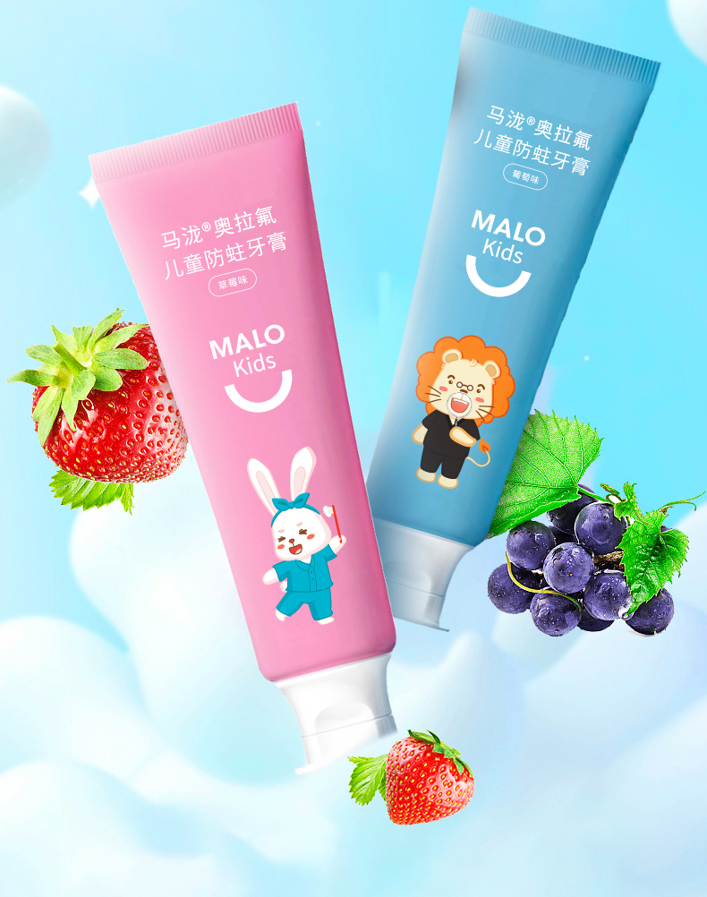 马泷奥拉氟儿童防蛀牙膏(6支装 草莓味3支+葡萄味3支)