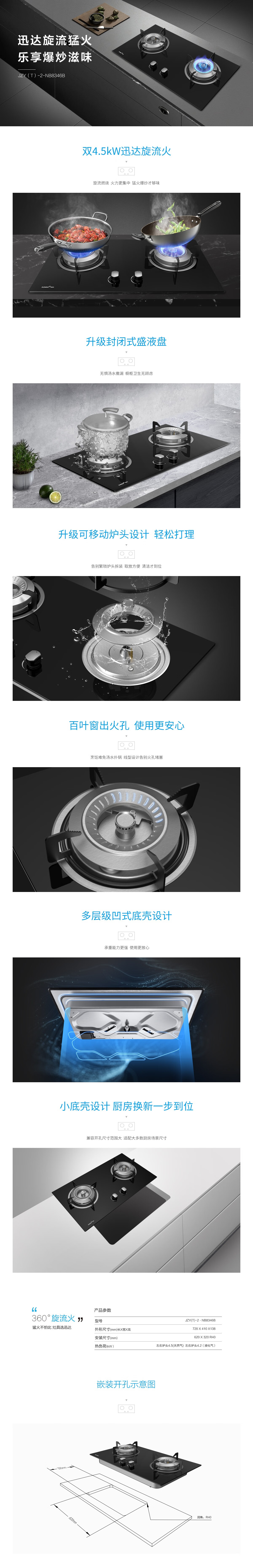 迅达(XUNDA)玻璃双灶 4.5kw大火力 台嵌两用JZT-2-NB8346B(天然气)