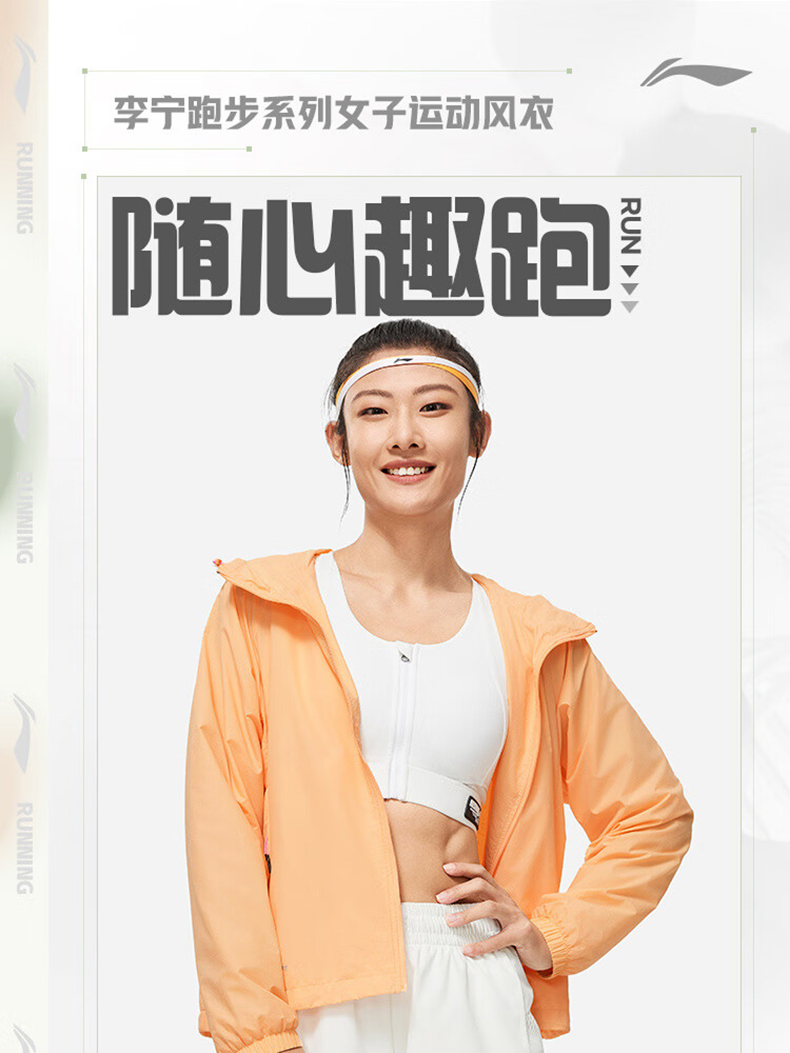 李宁 女子防风防泼水运动风衣纯色简约连帽开衫外套