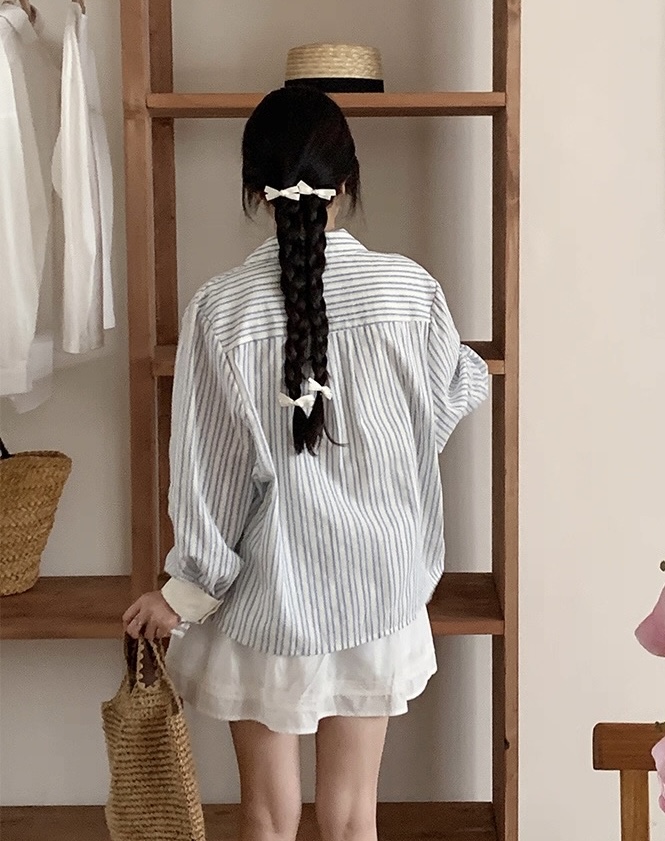 【浅幼 春日条纹衬衫】80-145斤可穿,版型宽松垂顺,面料轻薄舒适柔软,上身百搭文艺风!