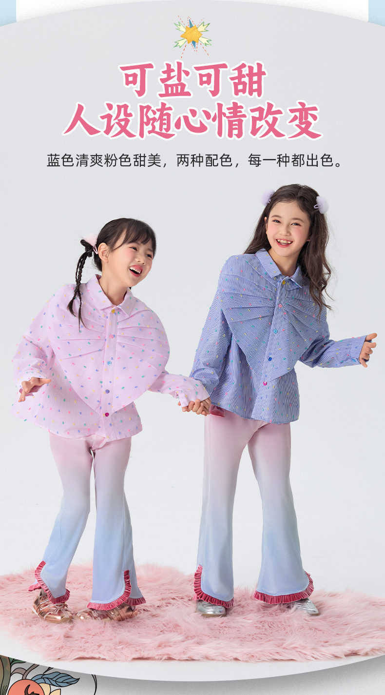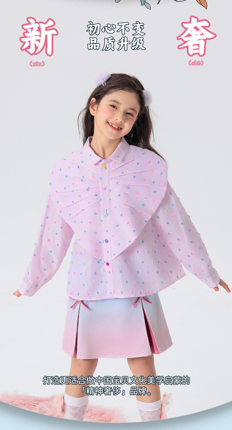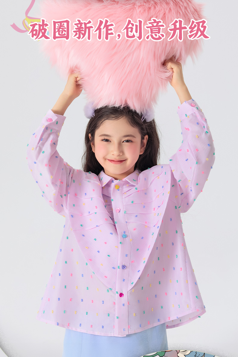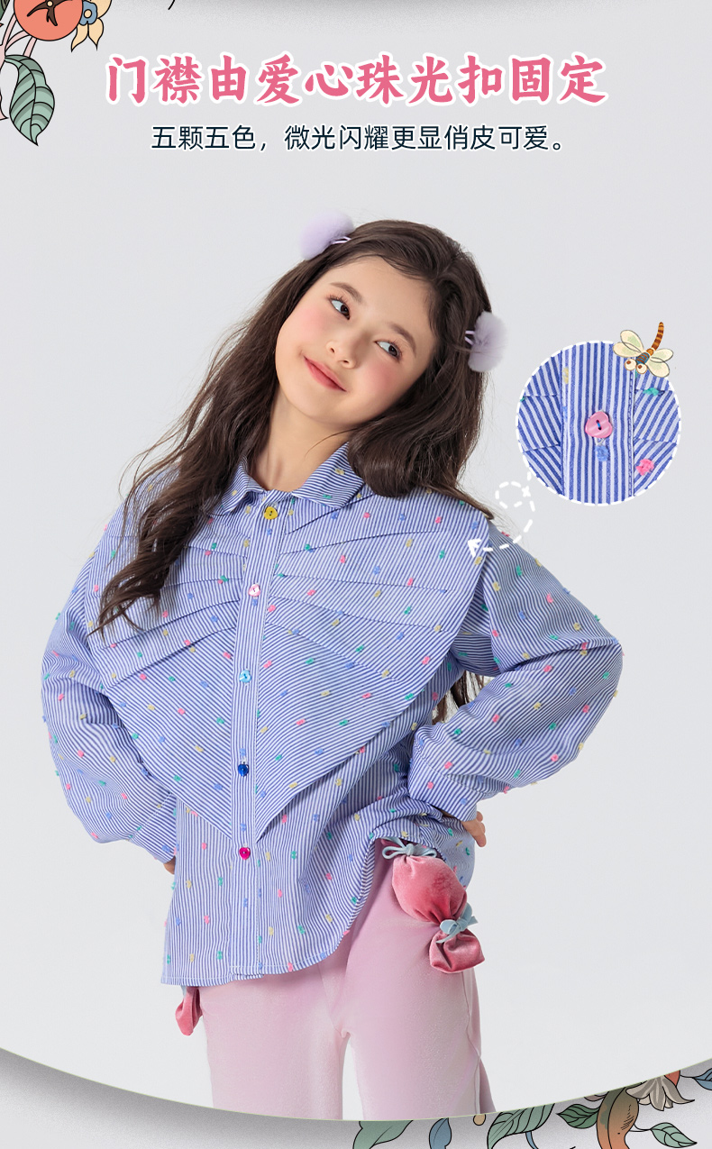 年衣童装2025年春新款学院风女孩衬衣儿童甜美娃娃衫上衣优格跳跳糖衬衫
