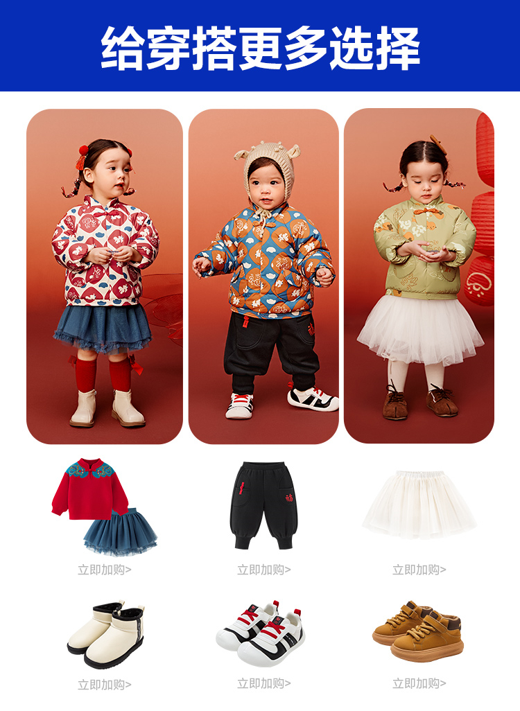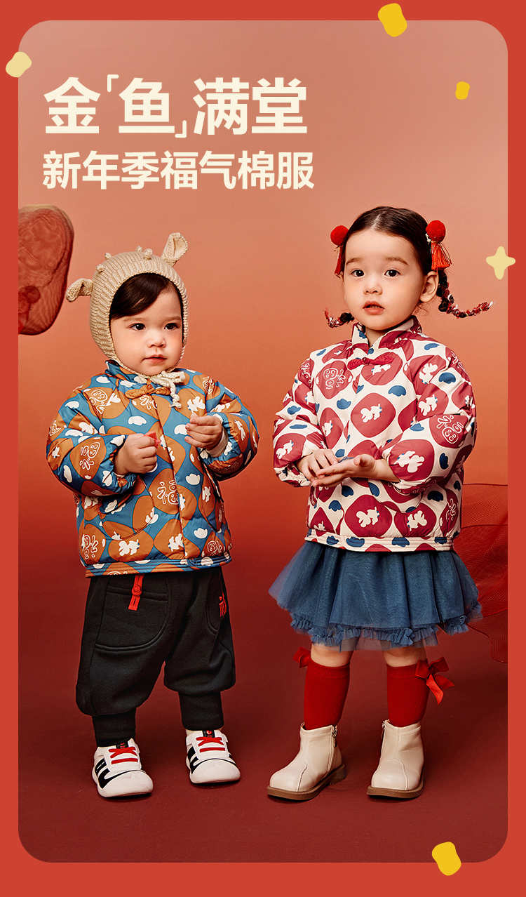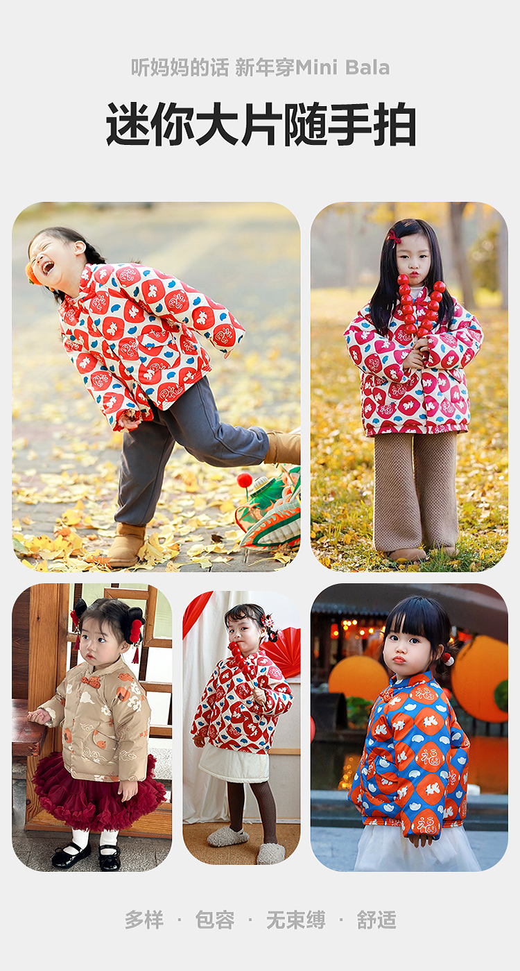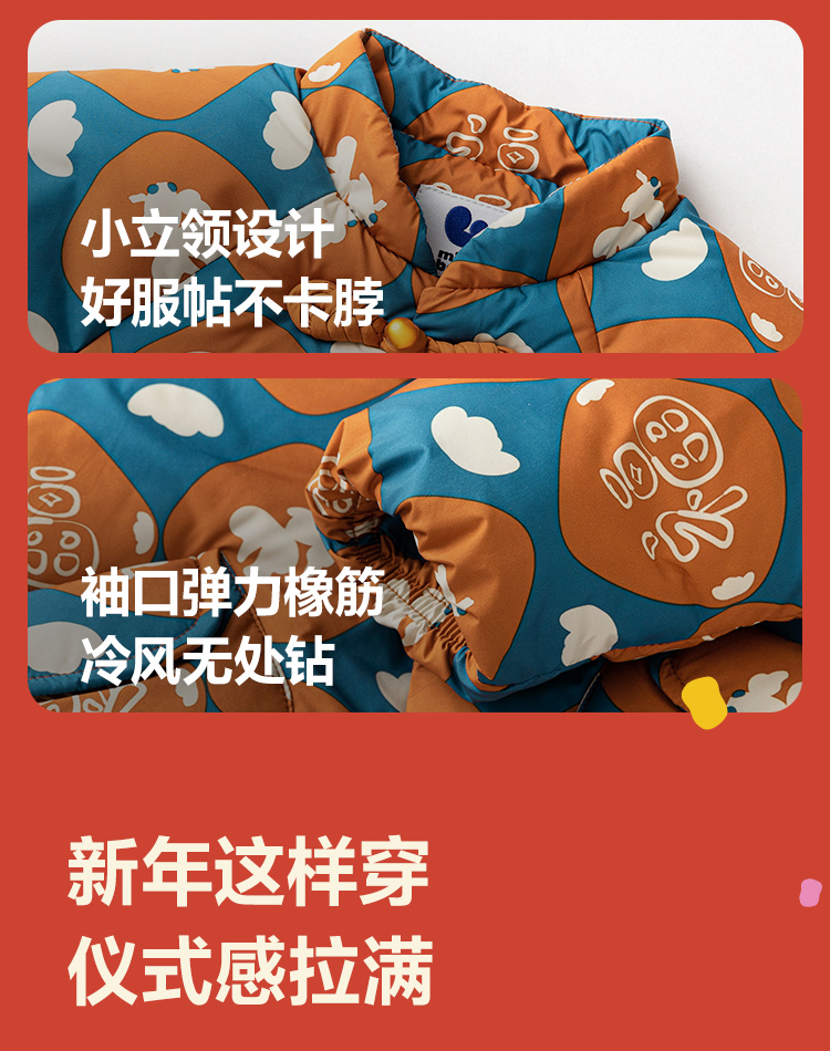 【新中式】迷你巴拉冬季新款儿童新年棉服外套防水保暖拜年服