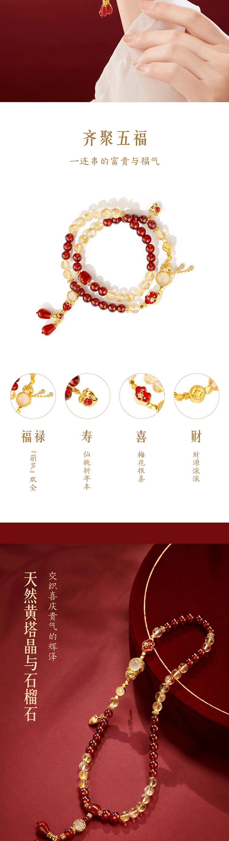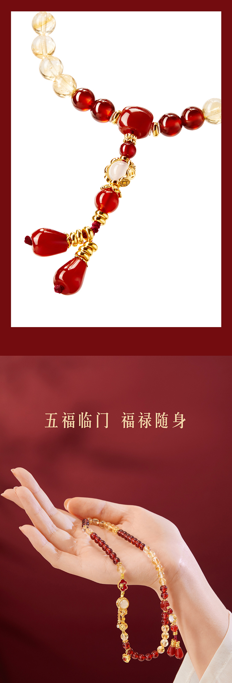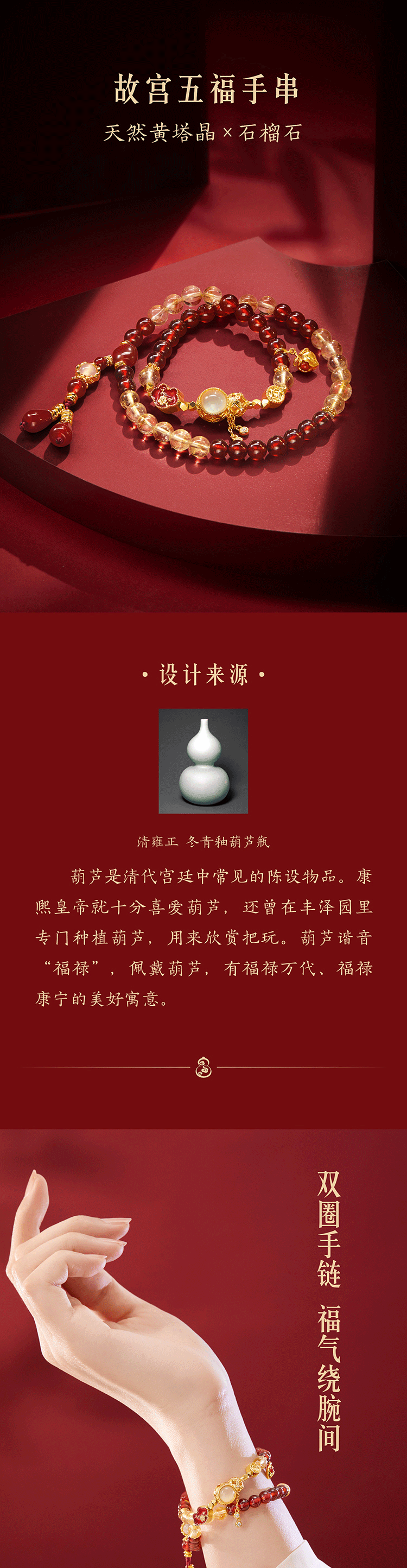 【故宫饰品】五福手串黄塔晶石榴石手链博物馆文创新婚生日礼物女生