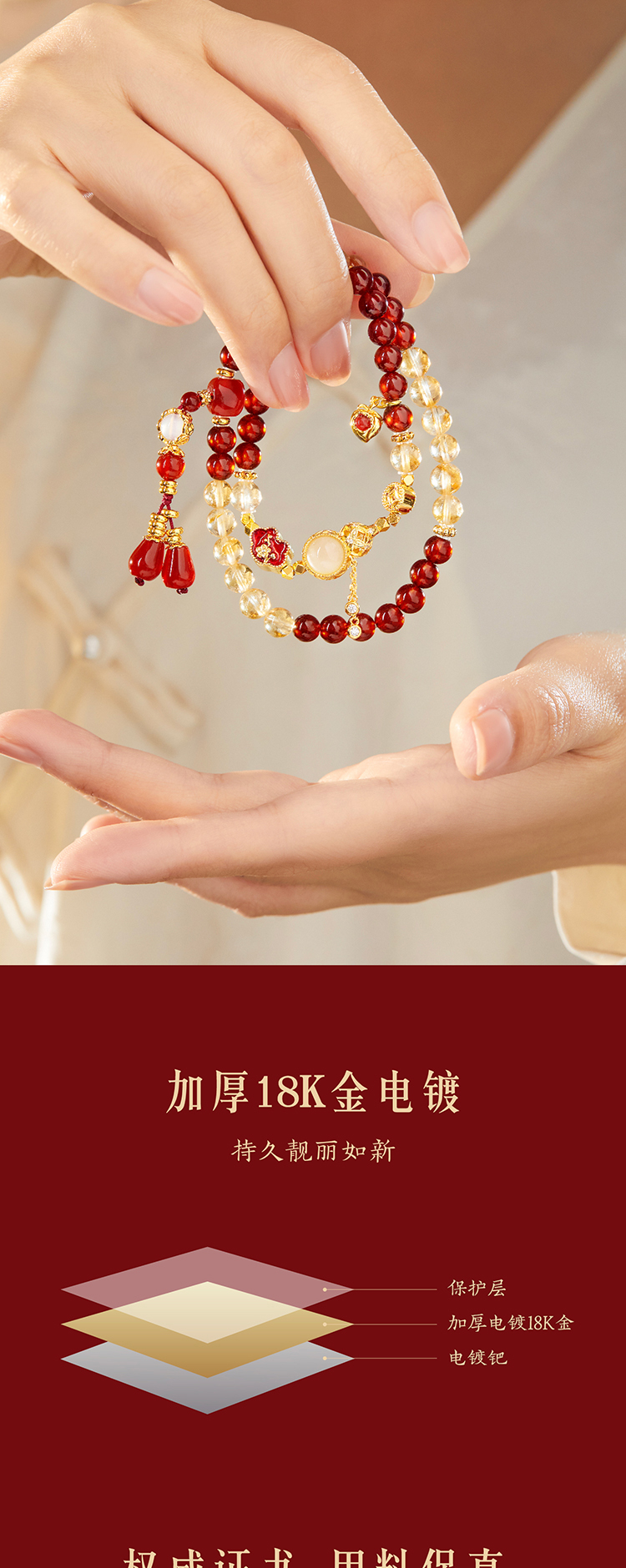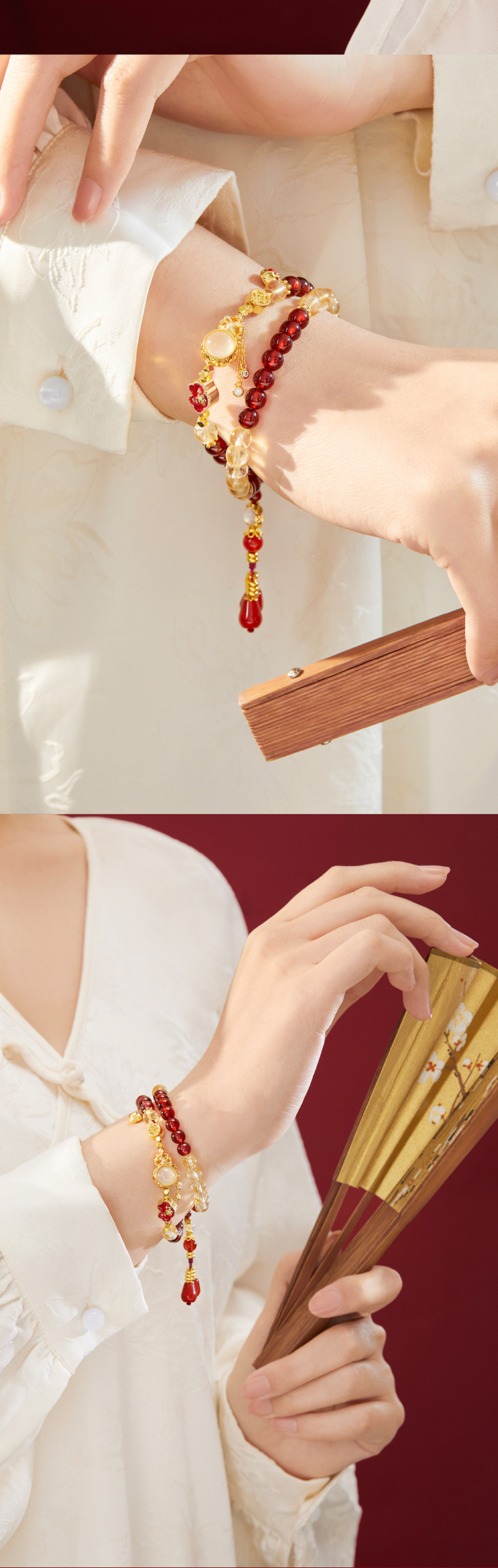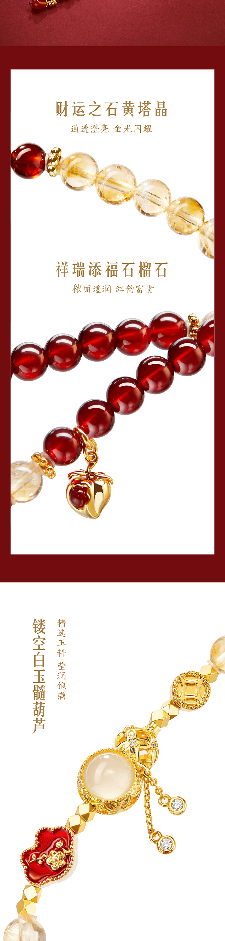 【故宫饰品】五福手串黄塔晶石榴石手链博物馆文创新婚生日礼物女生