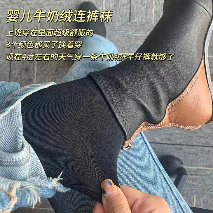 秋冬第一条打底裤必须是觉袈牛奶绒连裤袜💕 秋冬氛围感ootd离不开的单品🥳 亲测舒服好穿~而且巨巨巨显瘦 上身不勒腿✔️不紧绷✔️不臃肿✔️不堆积✔️ 一年春秋冬都可以穿,简约版修身裤,单穿or叠穿,无论搭配什么上衣都不会出错‼️ 性价比嘎嘎高,时髦精姐妹都给我闭眼冲啊!