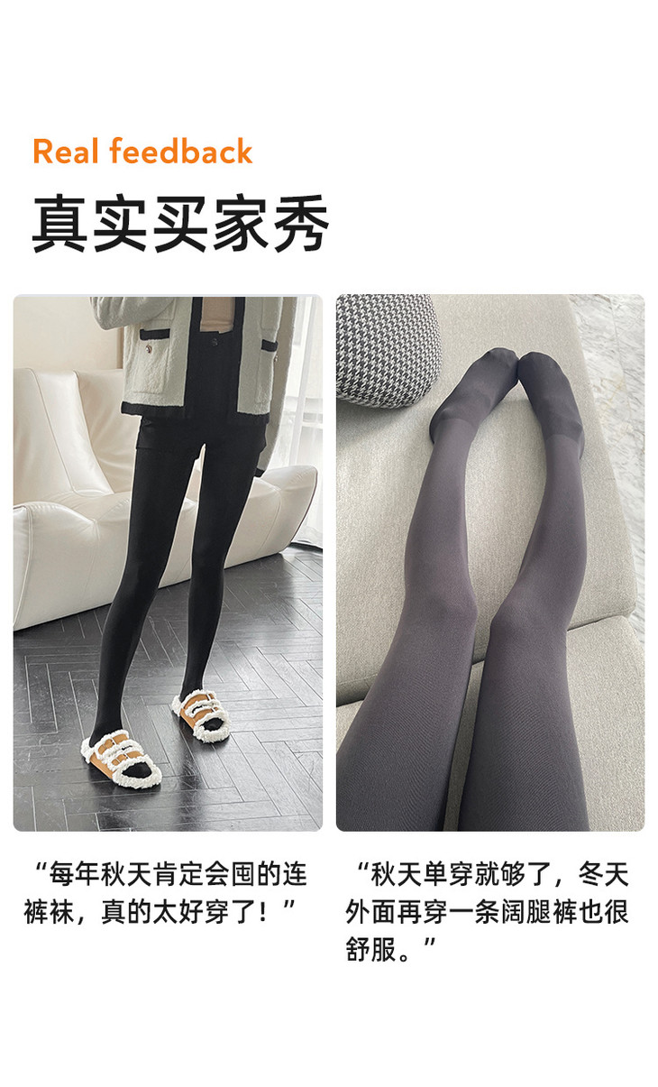 今年秋季限定款!!穿上就不想脱下来😭 既能保暖,还能让腿部不臃肿,轻松搭出纤细感💯 市面上打底裤的款式数不胜数 而越是这种百搭基础款,就越要看中质感! 这款【觉袈牛奶绒连裤袜】的质感,肉眼可见的好!! ▶️高品质面料,轻盈/柔软/细腻 ▶️内里牛奶绒柔软触感,温柔至极 ▶️永不过时的经典黑色,搭什么都好看 神器底围自发热功能,上身即暖!越穿越舒服 必须人手两条起,怕冷的姐妹都先去试试😎 不起球✔️不勾丝✔️不变形✔️不掉裆✔️