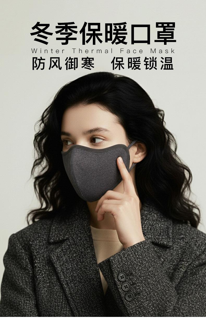 冬季口罩女加绒圆孔透气口罩女户外出行面罩防风防寒保暖口罩男