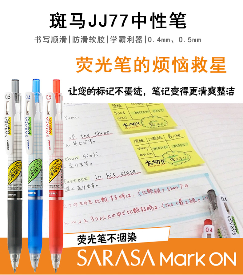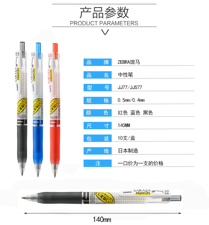 ZEBRA斑马JJ77限定格子不晕染速干按动中性笔0.5mm考试笔