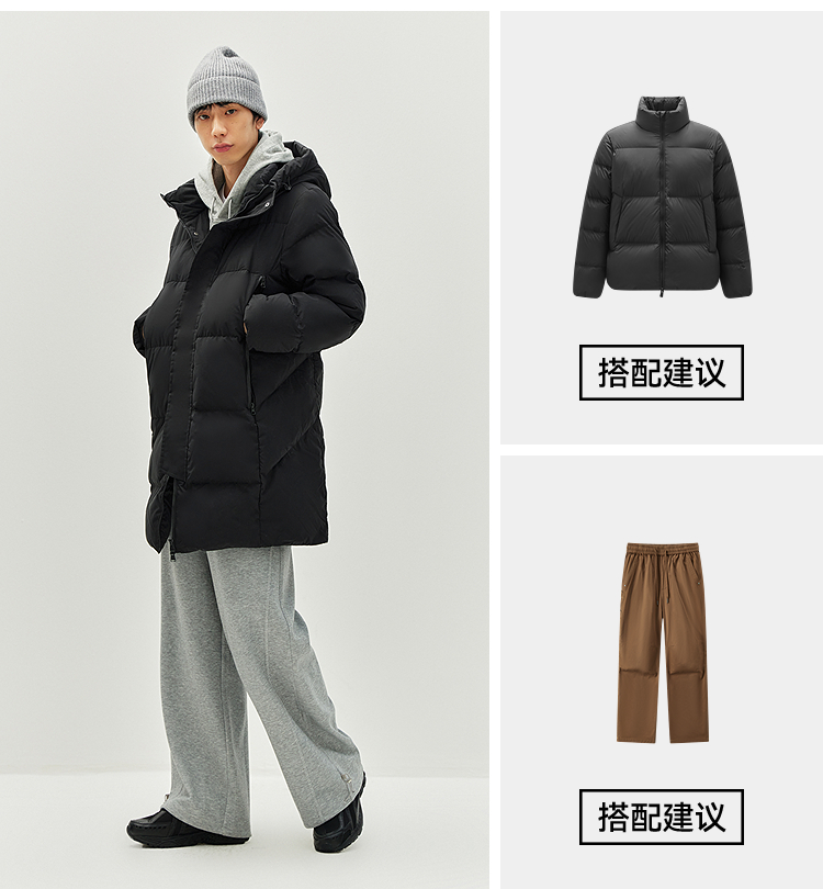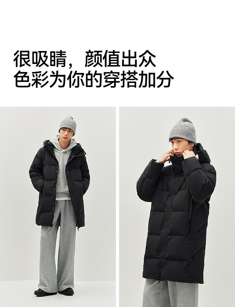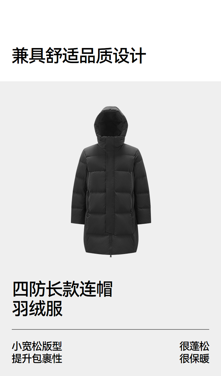 森马羽绒服男冬季90绒子防风三防2025新款户外长款连帽面包服保暖
