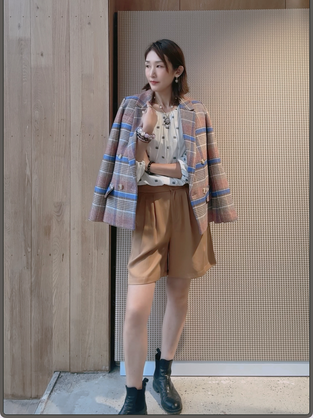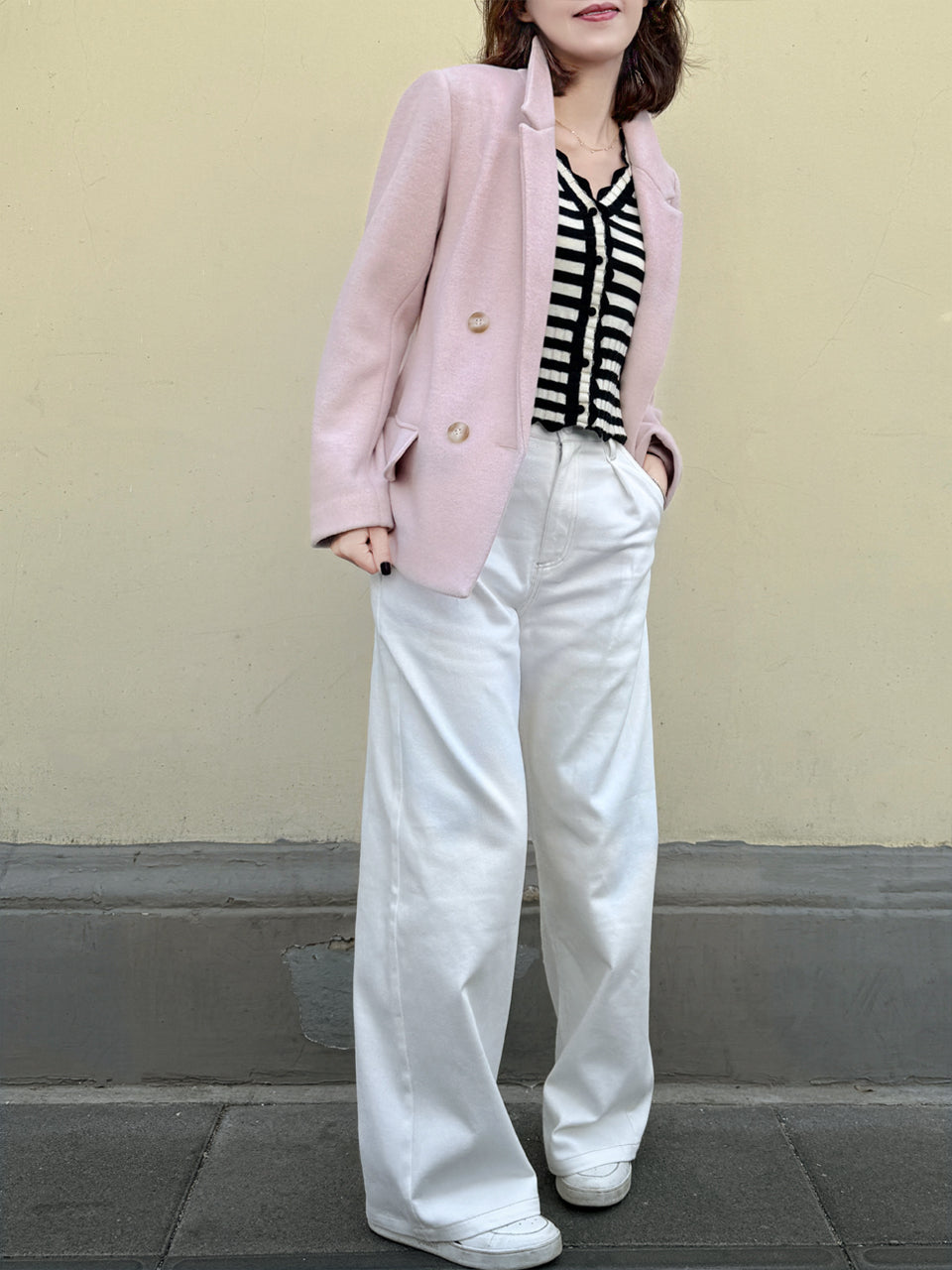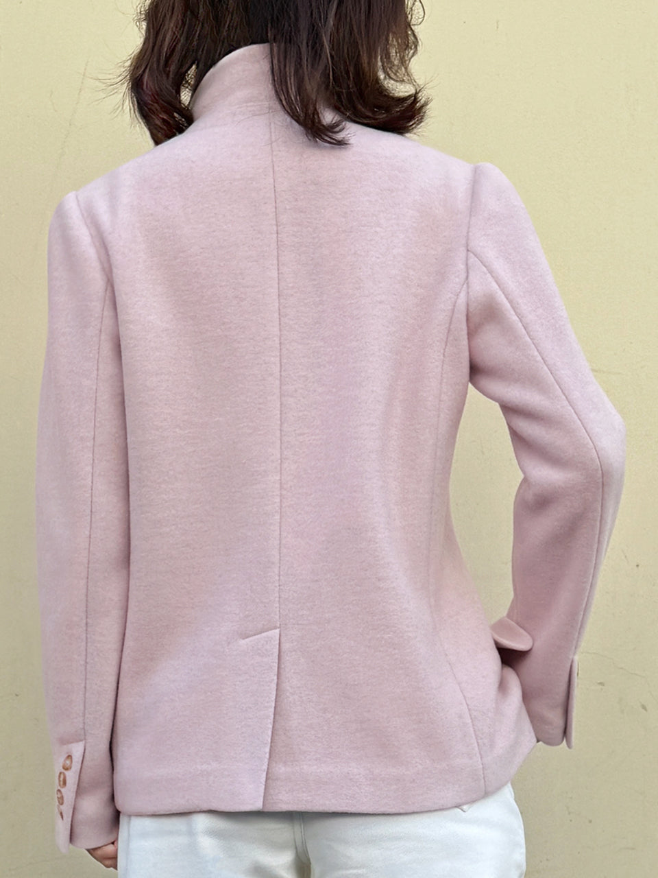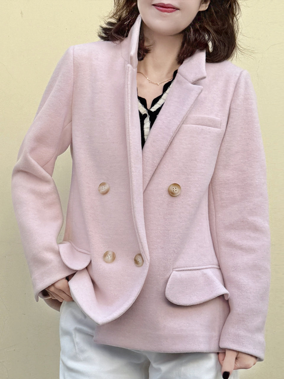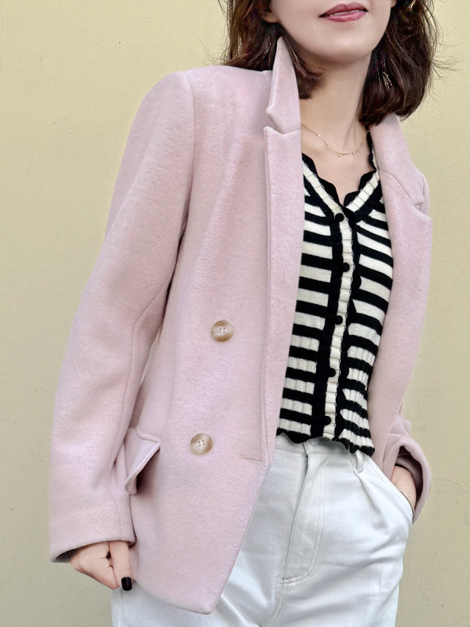 TYNVIE 双排扣翻盖羊绒羊毛西装外套 - 粉色/格纹