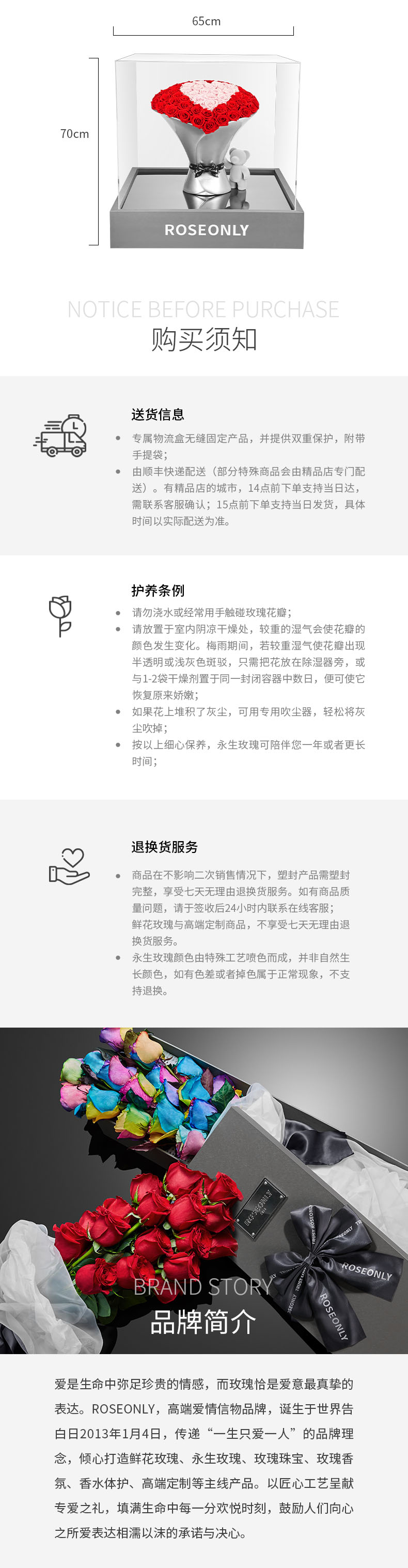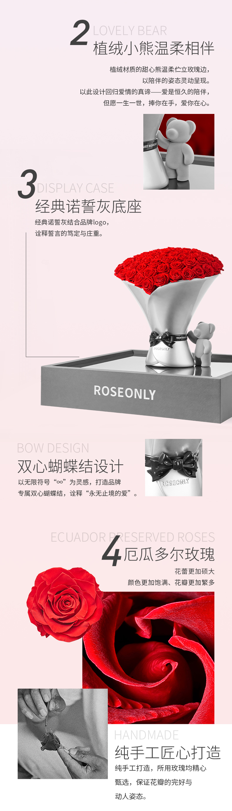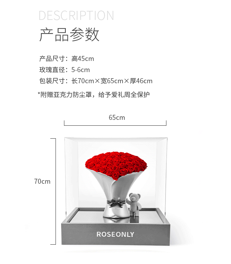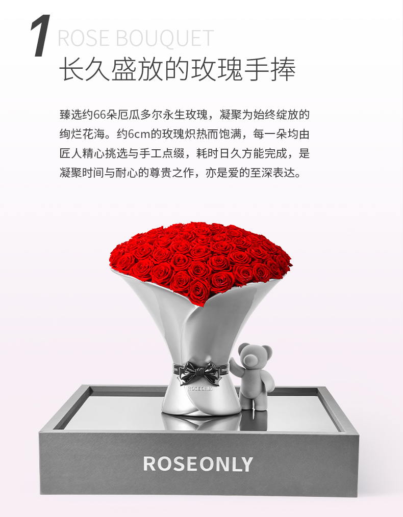 【告白神器】ROSEONLY诺誓 高端定制 永生玫瑰 玫瑰系列-稳稳 永生花手捧礼物