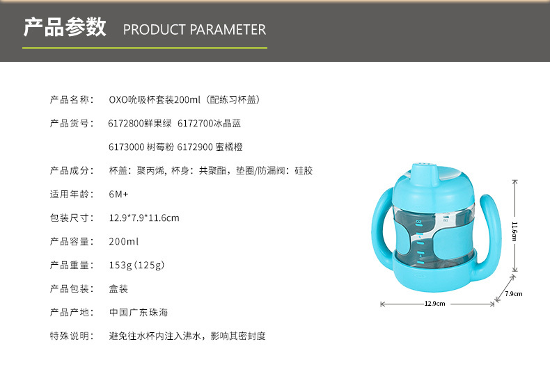 OXOOXOtot奥秀新款吮吸杯套装(配练习杯盖)(蓝色)6172700