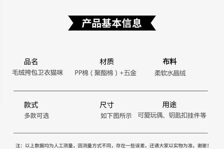 挎包卫衣猫咪书包挂饰钥匙扣公仔挂件毛绒玩具批发迷你玩偶布娃娃