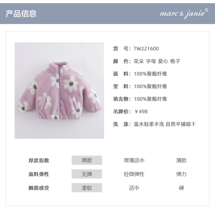 马克珍妮新款秋冬装 男女童仿羊羔毛立领外套 儿童上衣221600