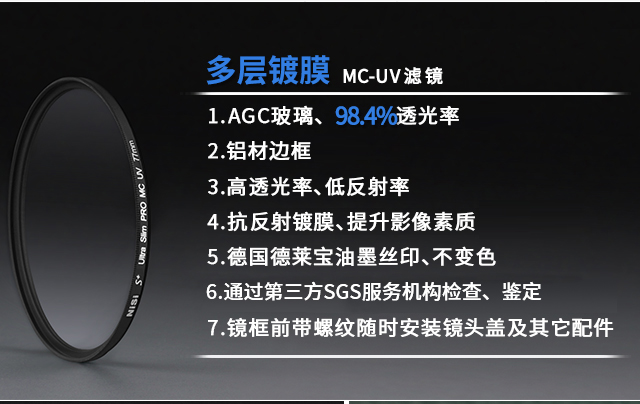 耐司(NiSi)MC UV 77mm UV镜 双面多层镀膜无暗角 单反uv镜 保护镜 单反滤镜 滤光镜 佳能尼康相机滤镜