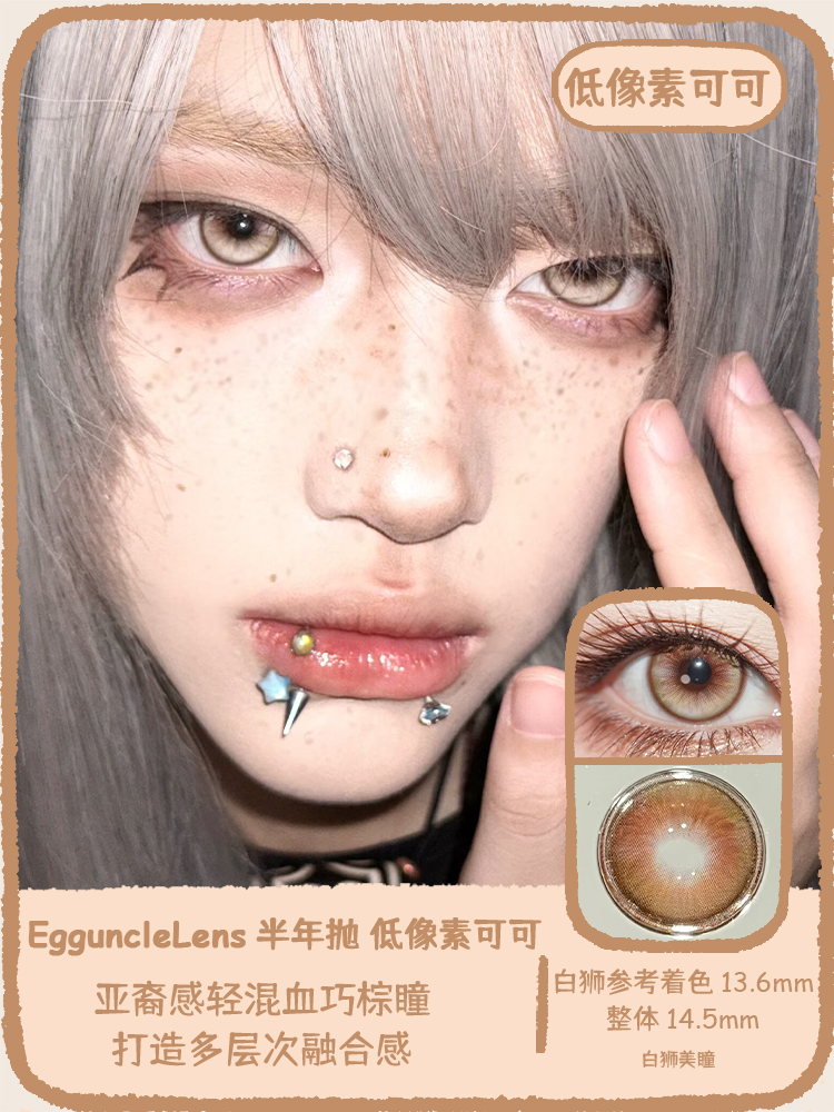EggUncle Lens旗下 ·低像素可可&镭射泡泡糖|14.5mm白狮参考着色中大直径 半年抛 2片