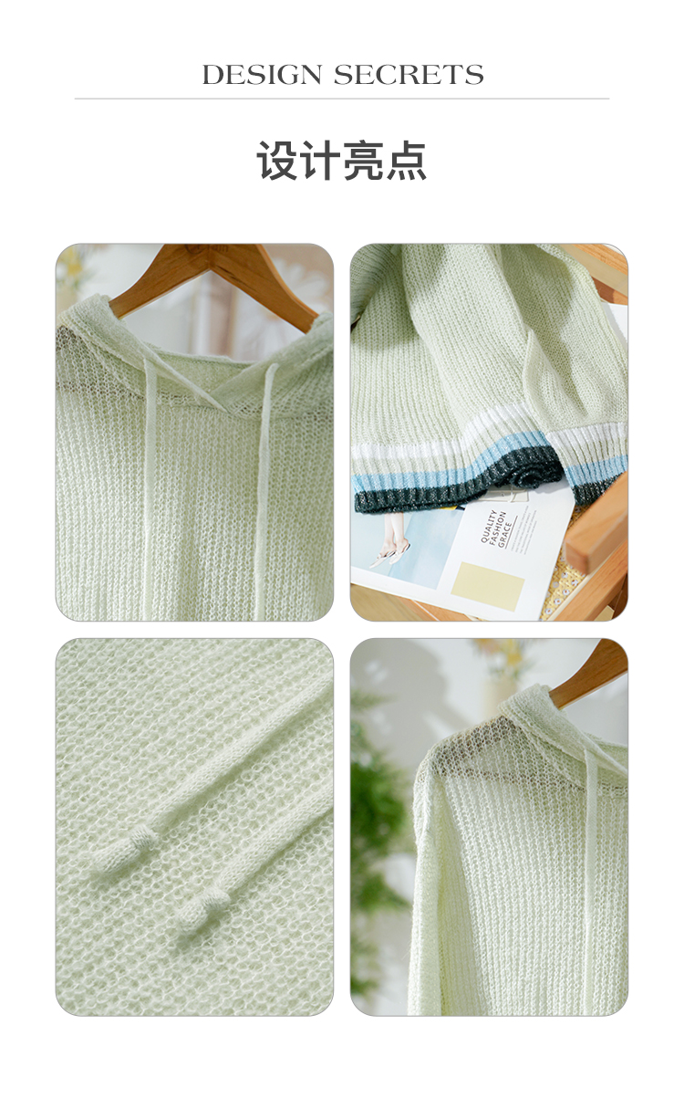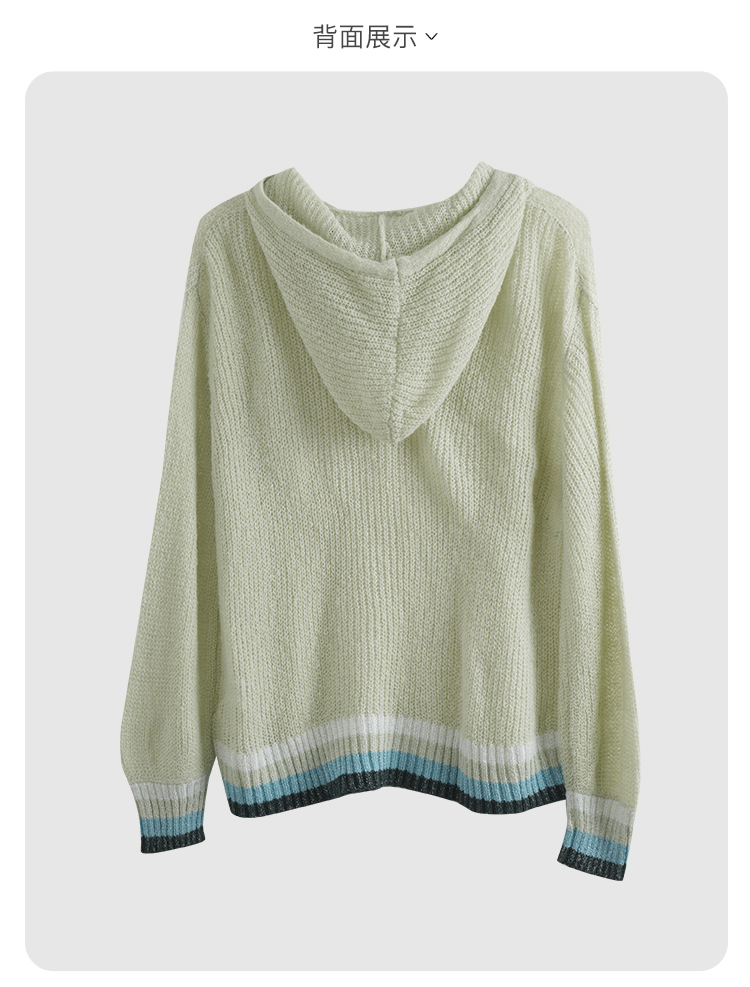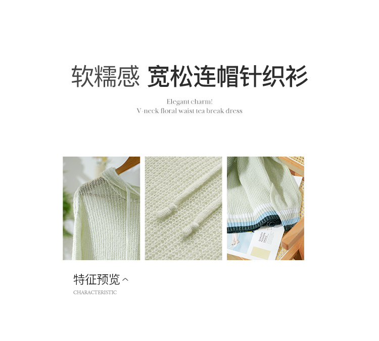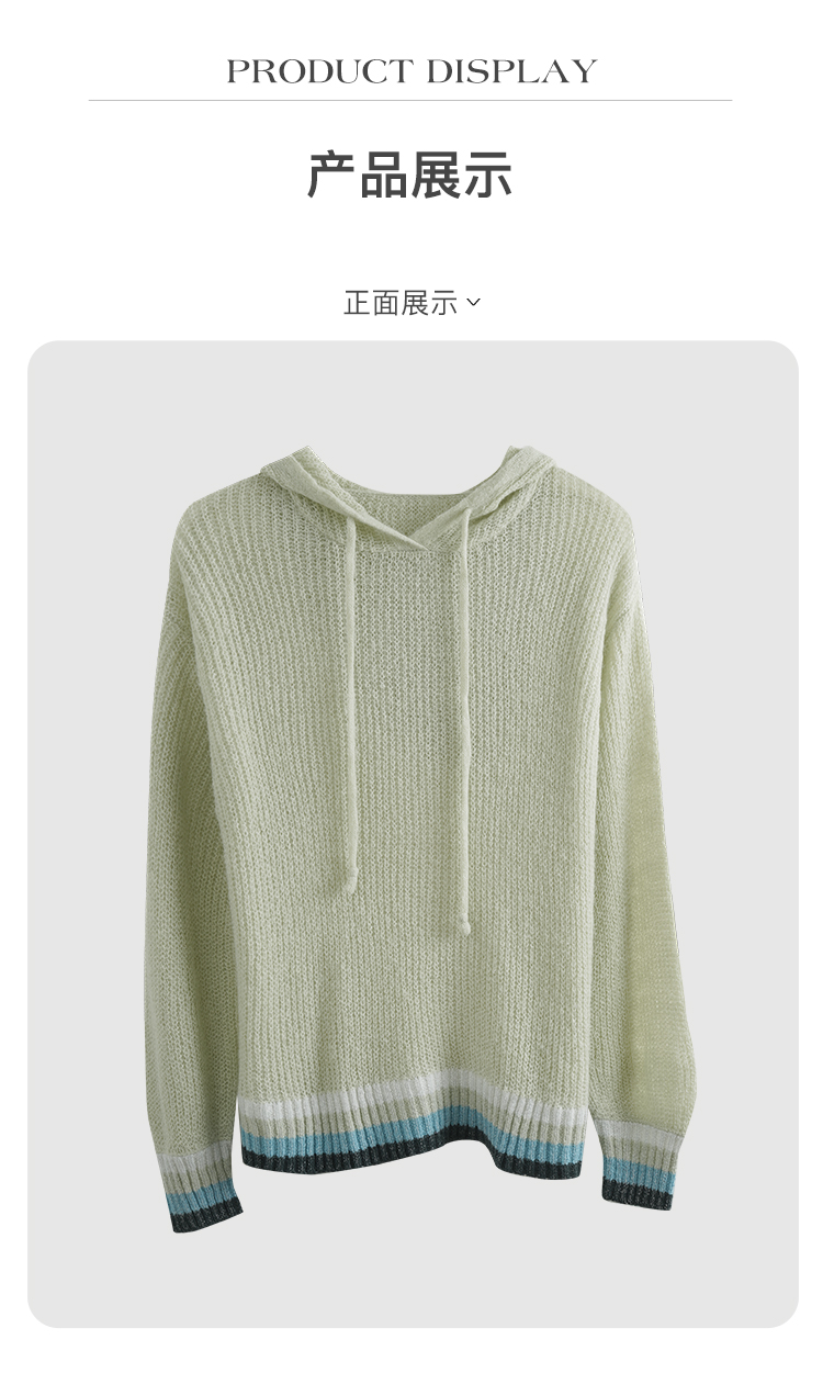 欧芮儿新长袖连帽毛衣女宽松外穿套头牛油果绿针织衫上衣