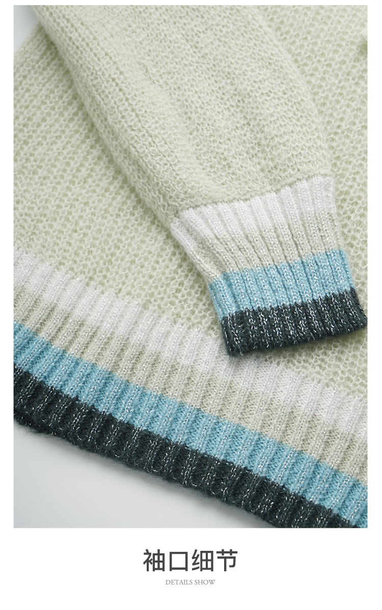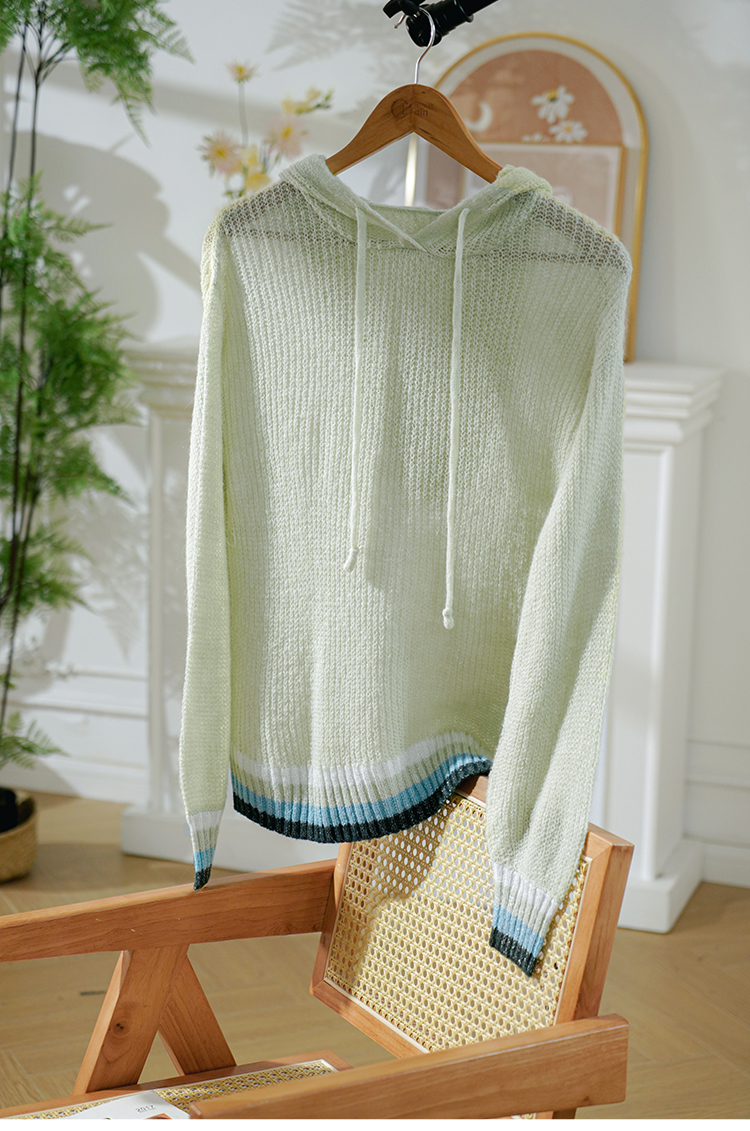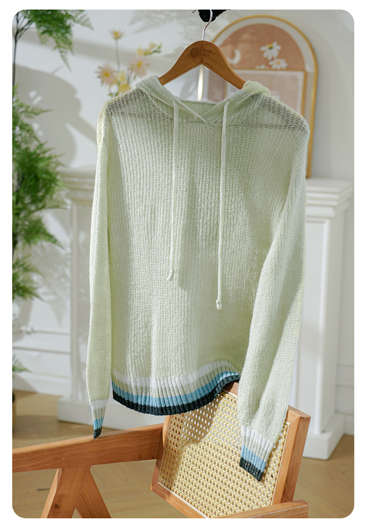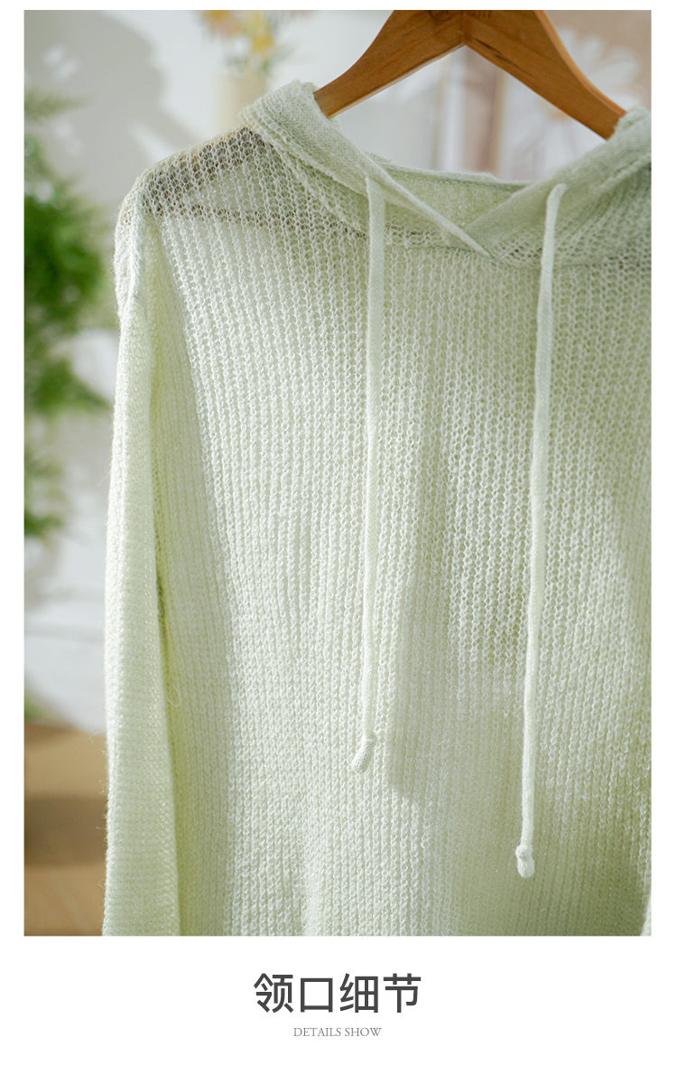 欧芮儿新长袖连帽毛衣女宽松外穿套头牛油果绿针织衫上衣