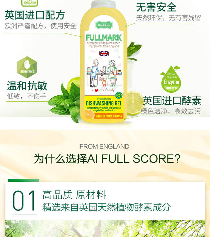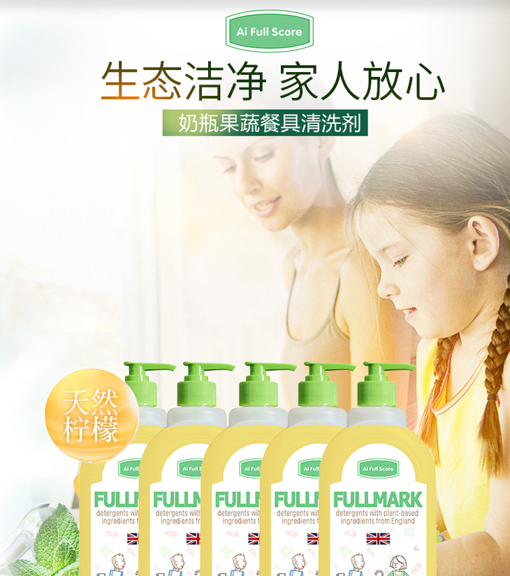 【英国条码】Ai Full Score奶瓶果蔬餐具清洁剂1000ml婴儿玩具清洗液宝宝儿童餐具清洗剂1L