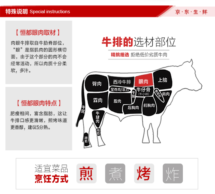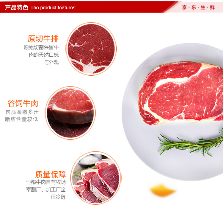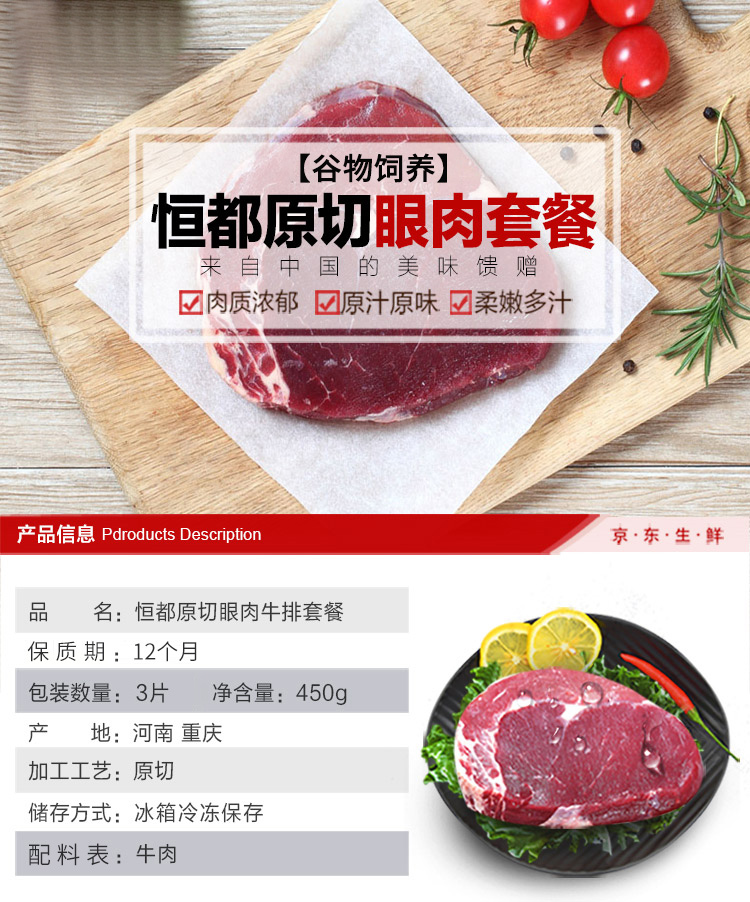 恒都 国产谷饲眼肉原切牛排 450g/袋 3片 原切牛肉