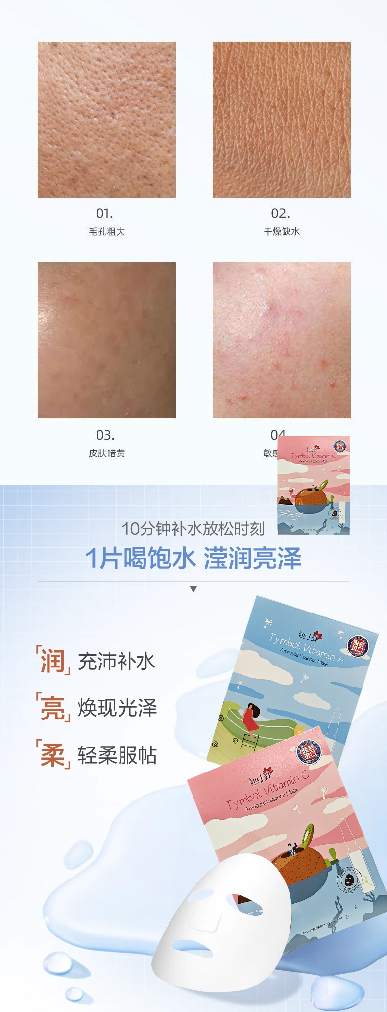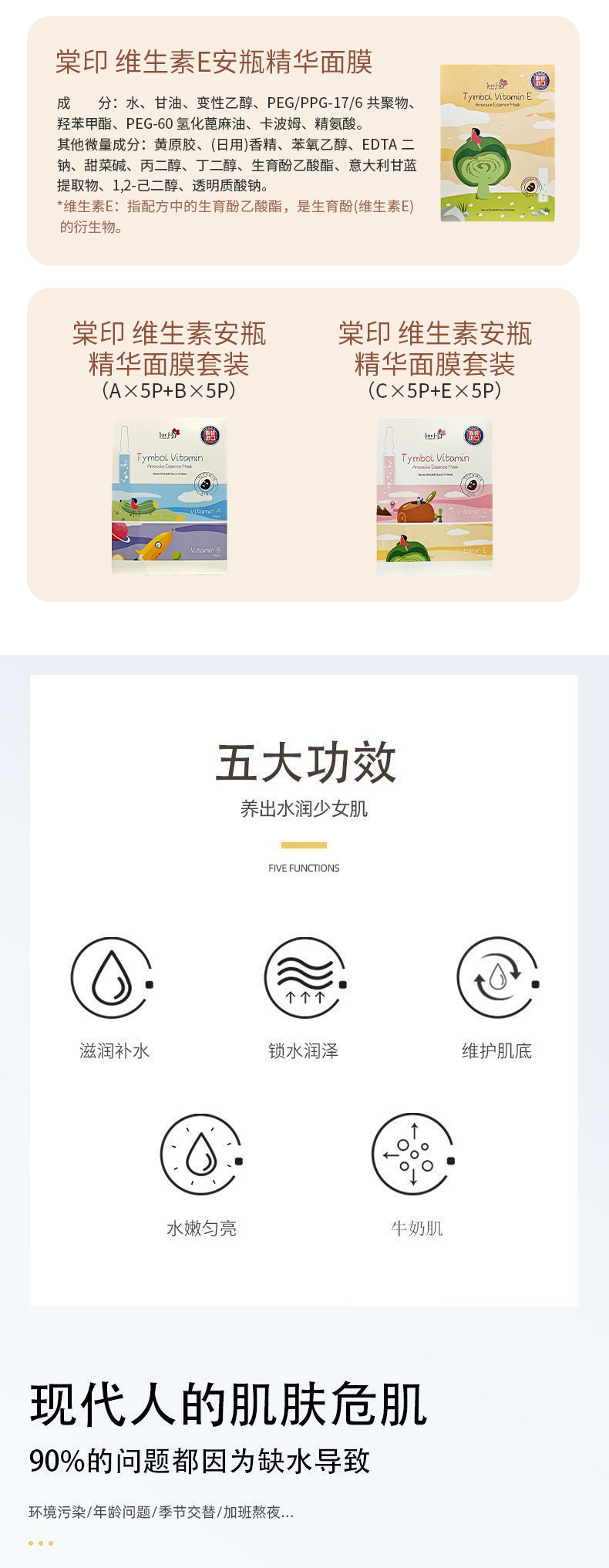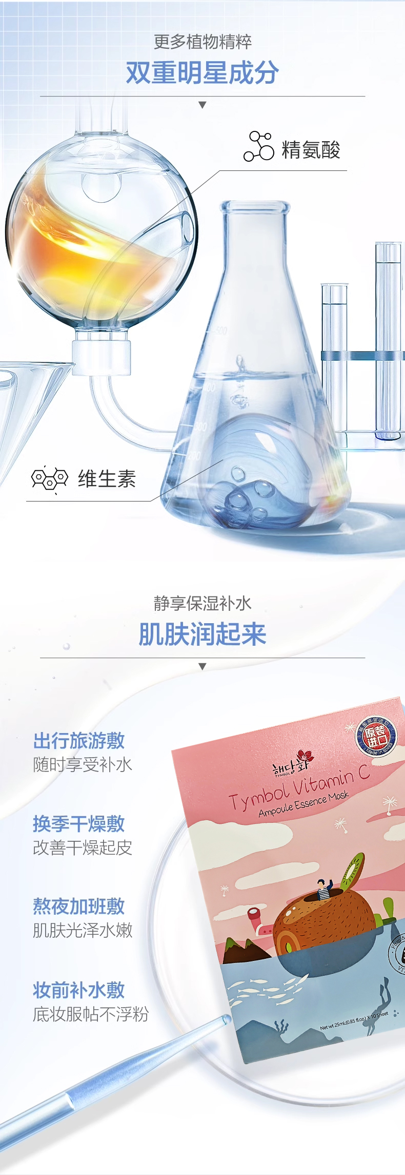 韩国进口棠印 维生素安瓶精华面膜10片【盒】