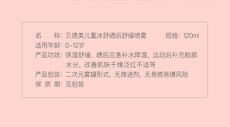 贝德美儿童冰舒晒后舒缓喷雾120ml-成品