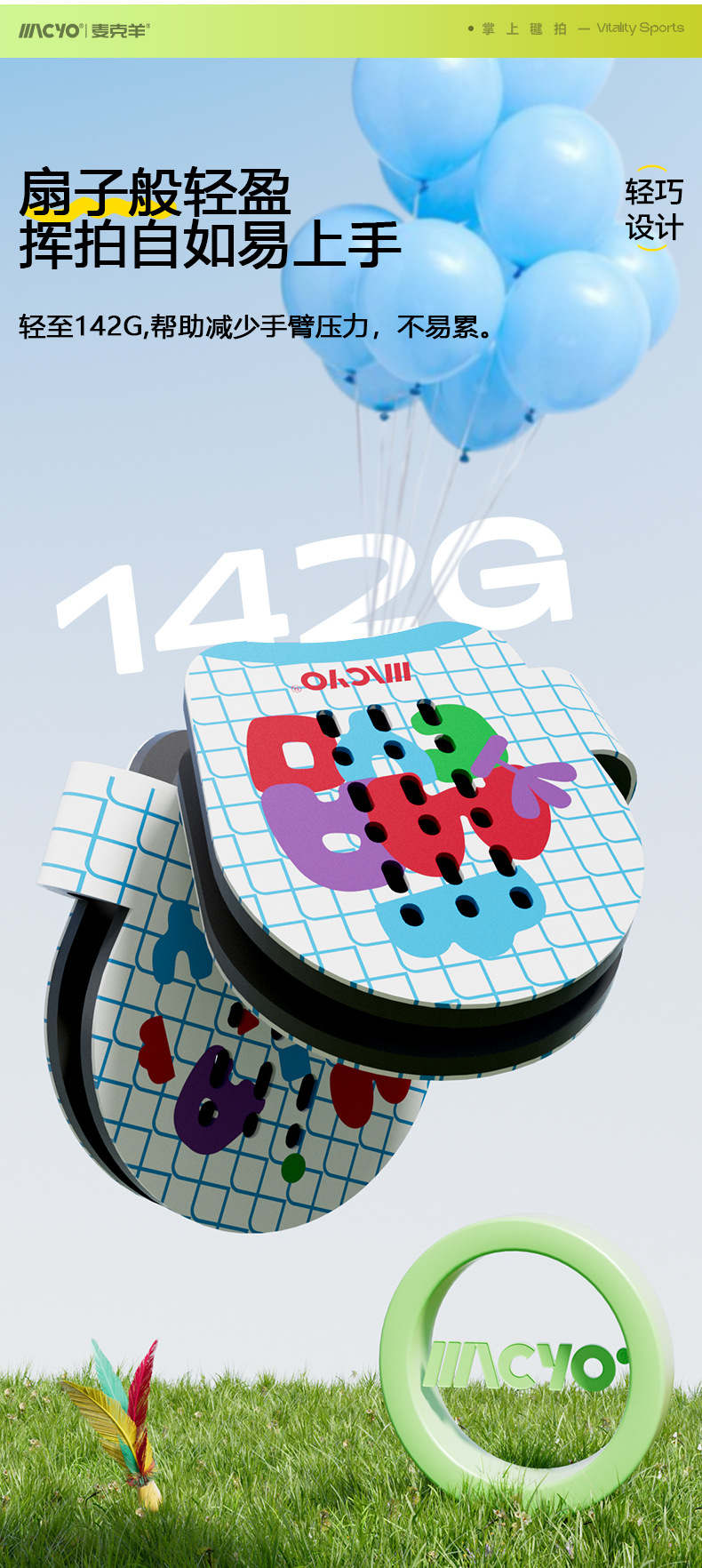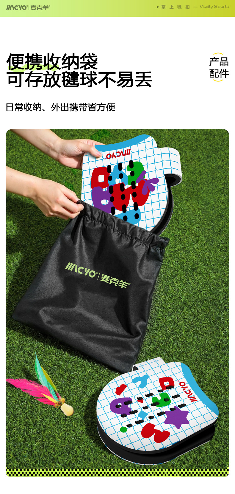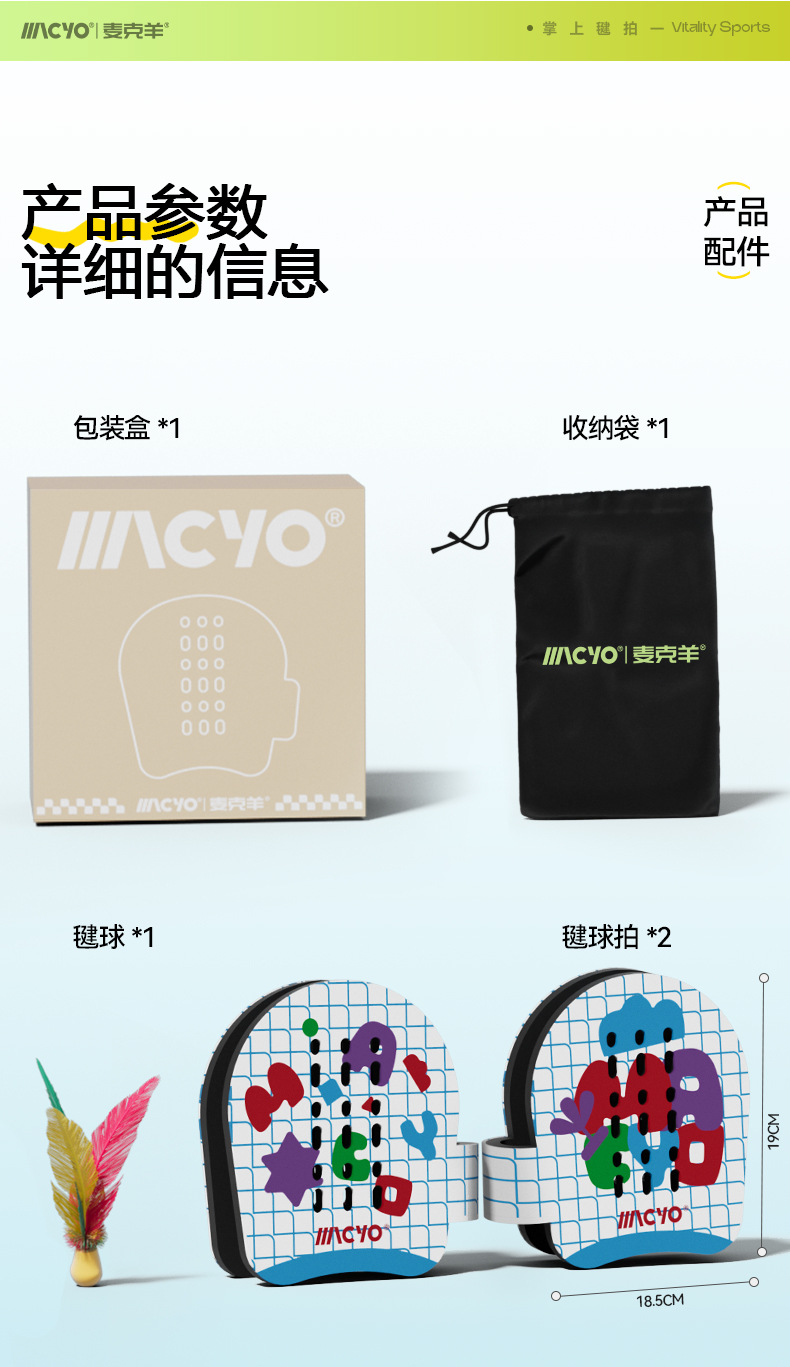 【赠便携收纳袋】MACYO/麦克羊掌上羽毛球毽拍 儿童轻量化球拍 亲子运动感统训练器材 不限人数 趣玩好上手