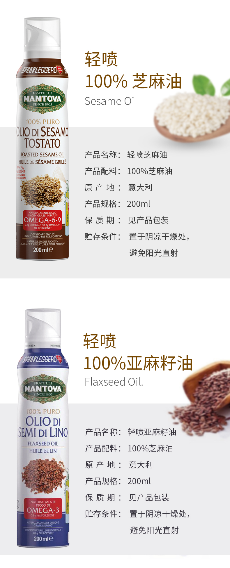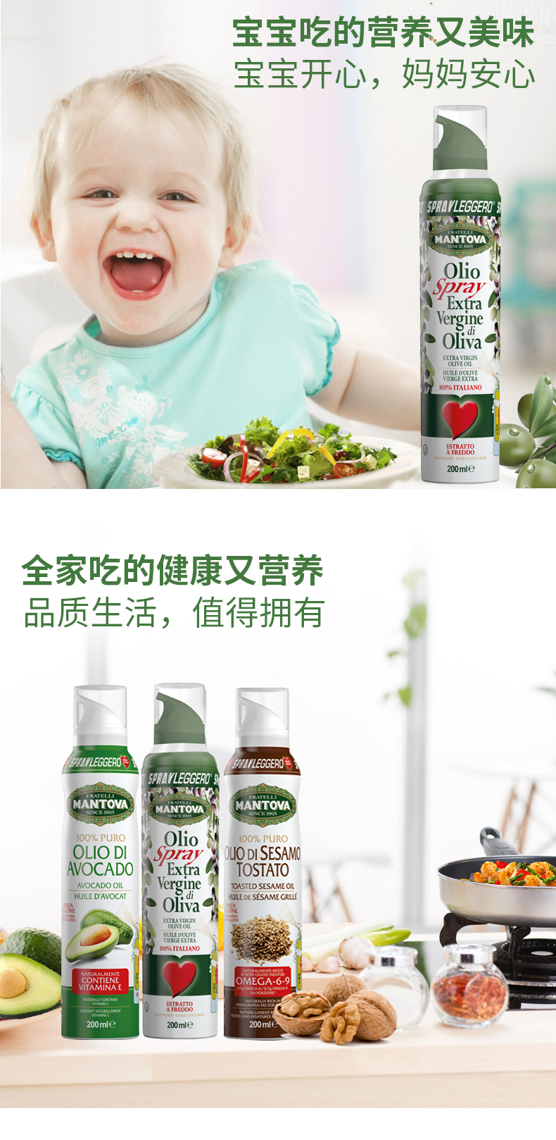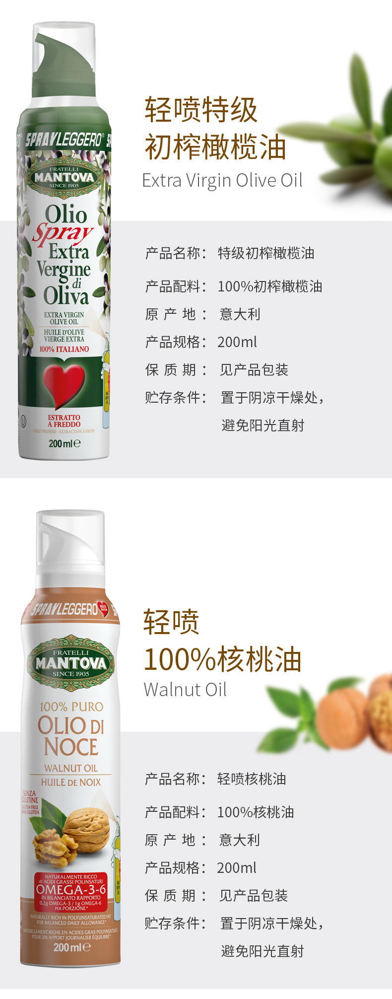 MANTOVA轻喷意大利进口家庭装低温香气特级初榨橄榄油喷雾200ML
