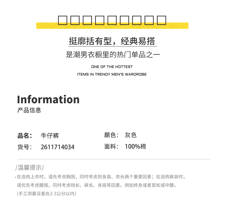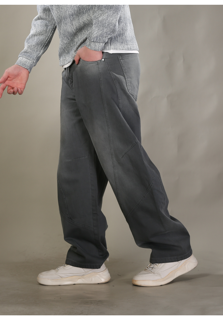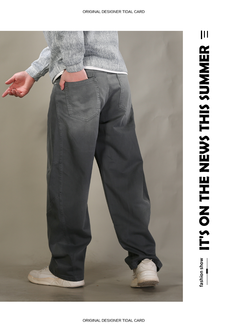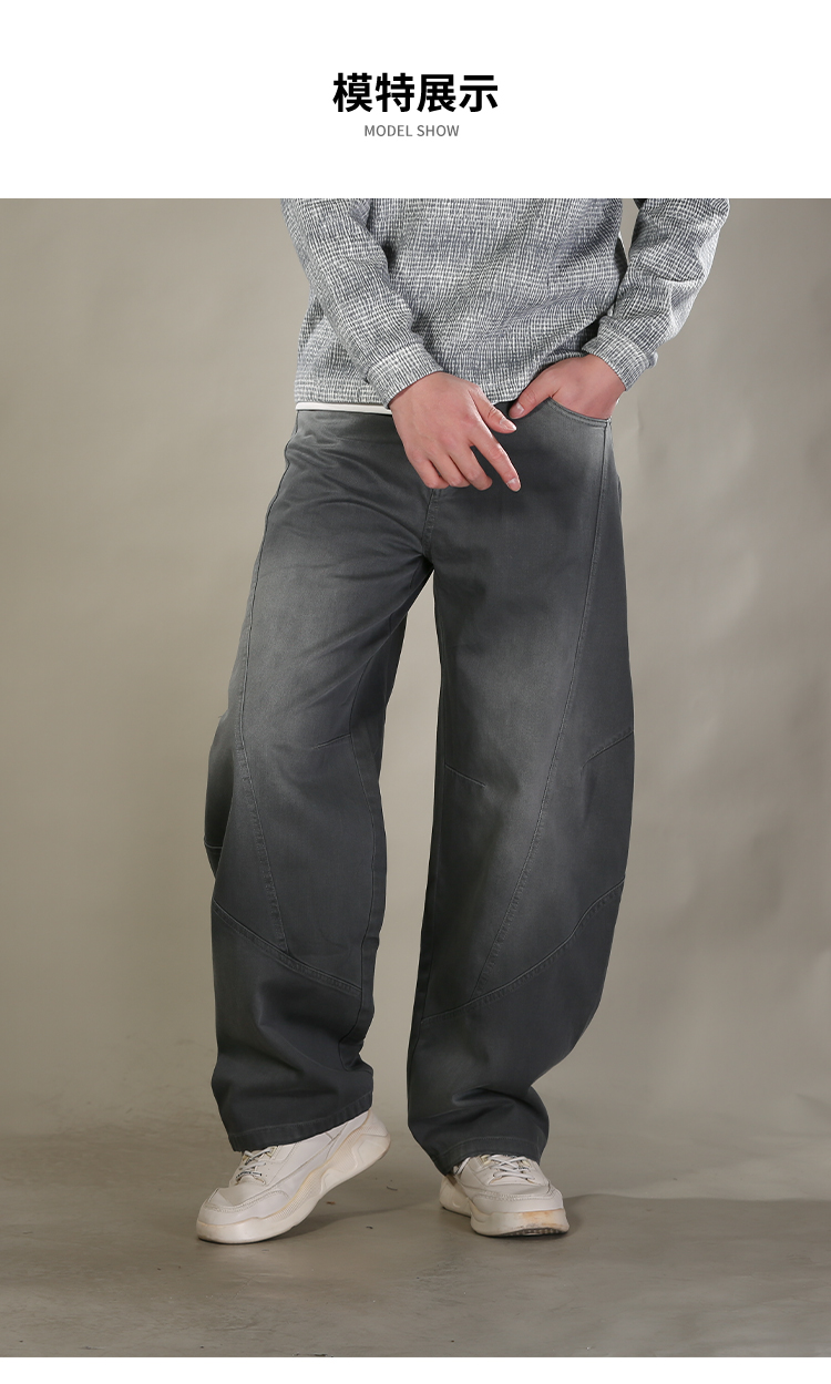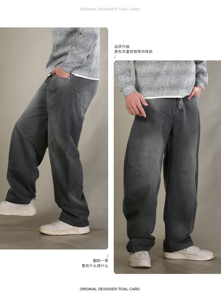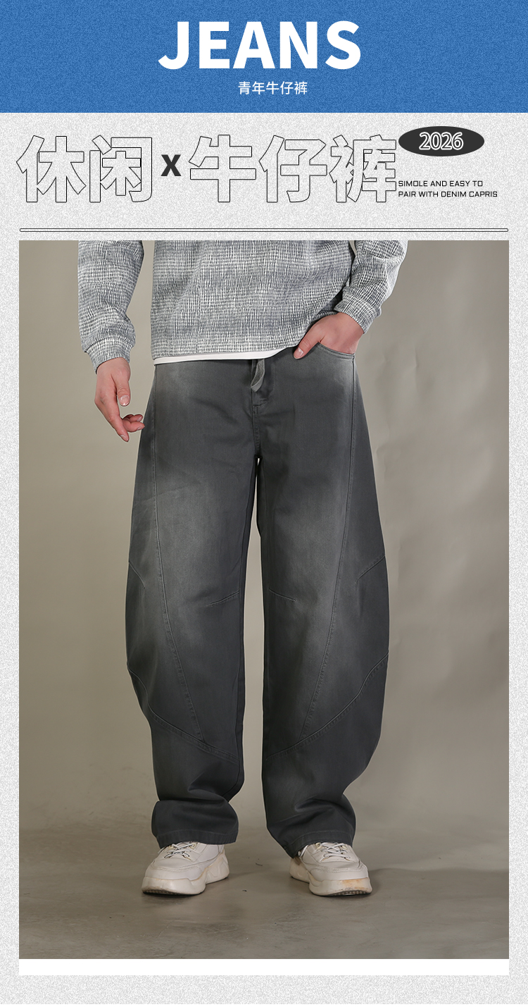 DRONKOO 2026 抽绳半松紧前交叉破骨多位喷色中厚牛仔长裤