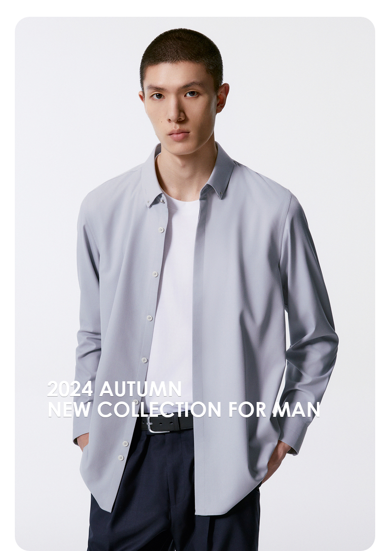 GXG男装 多色基础设计通勤长袖衬衫男士24年秋季热卖G24X033036