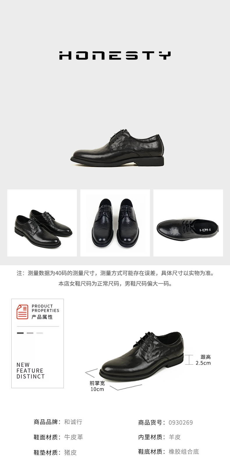 和诚行2026春季新款流行尖头商务正装皮鞋增高男式商务鞋0930269