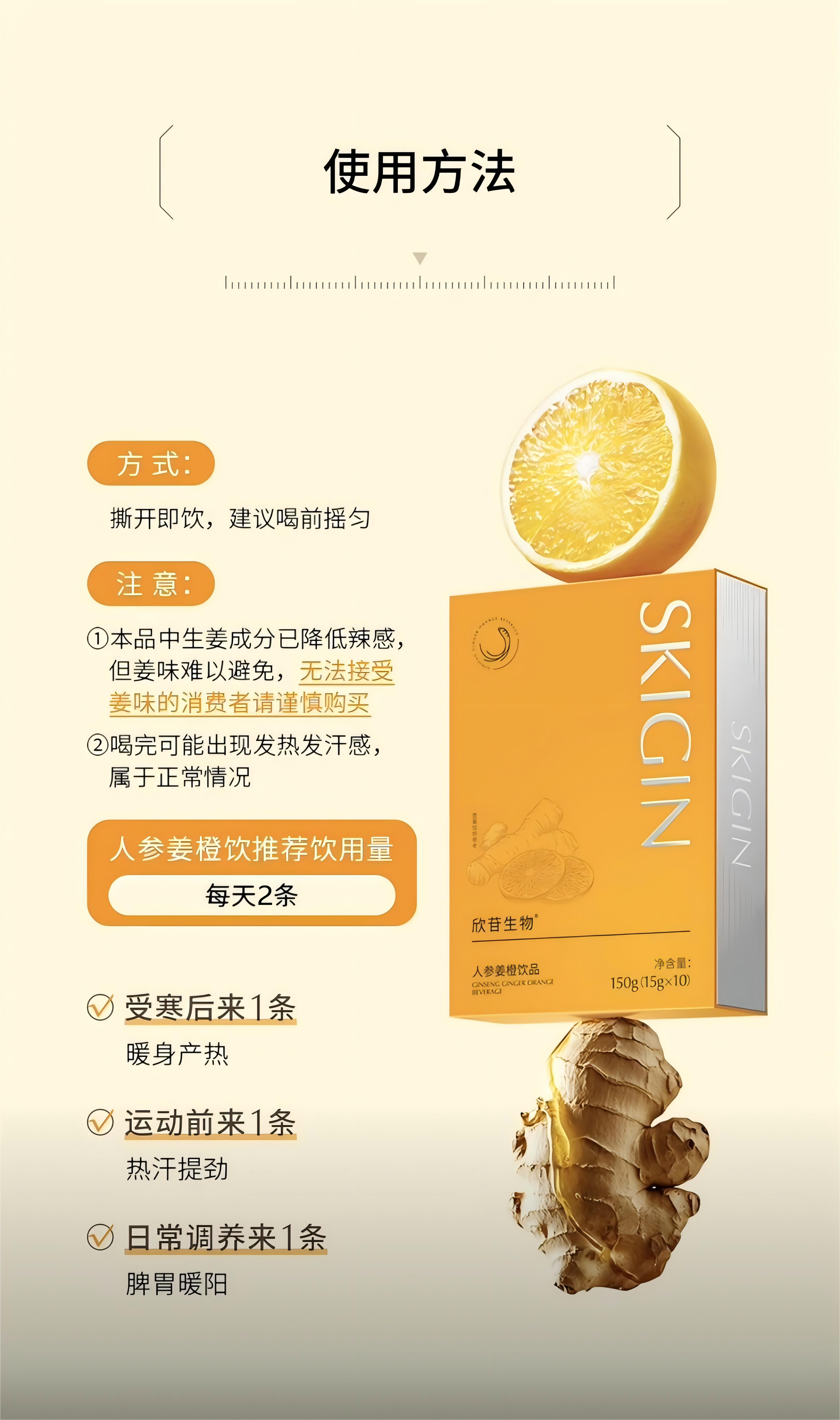 lkc巨子生物SKIGIN参苷*人参姜橙饮品 【限时加赠买6送2 买10送5】燃动轻盈 找回状态 更适合中国人的燃动饮