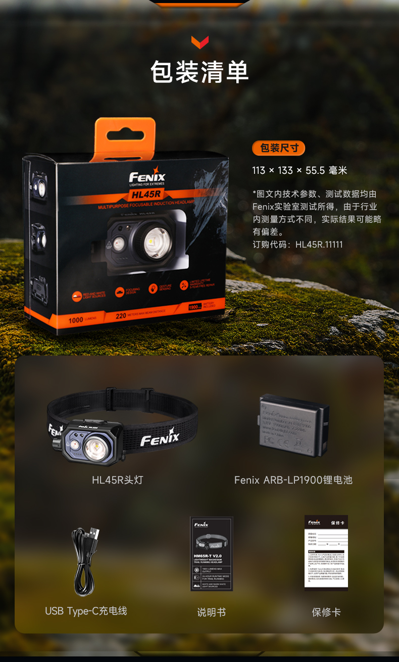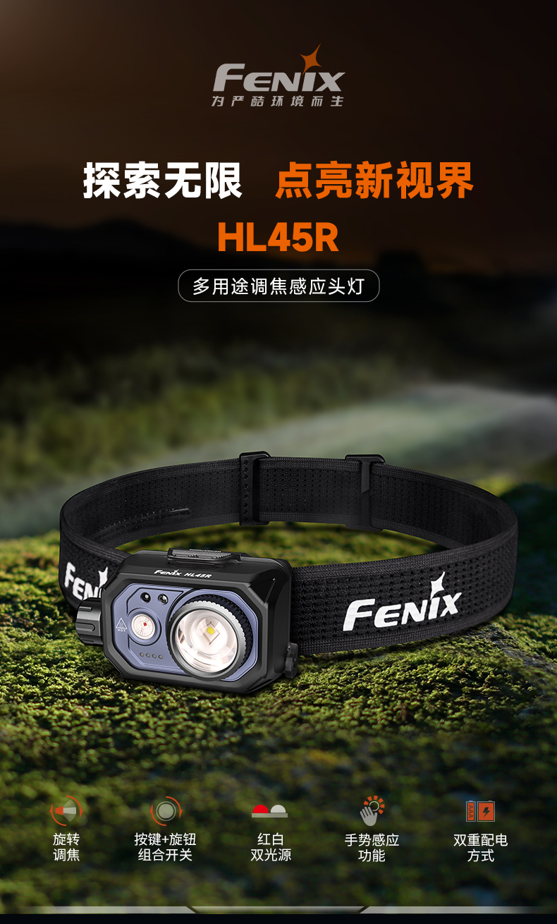 Fenix菲尼克斯HL45R新款强光超亮调焦头灯头戴式户外钓鱼专用感应头灯