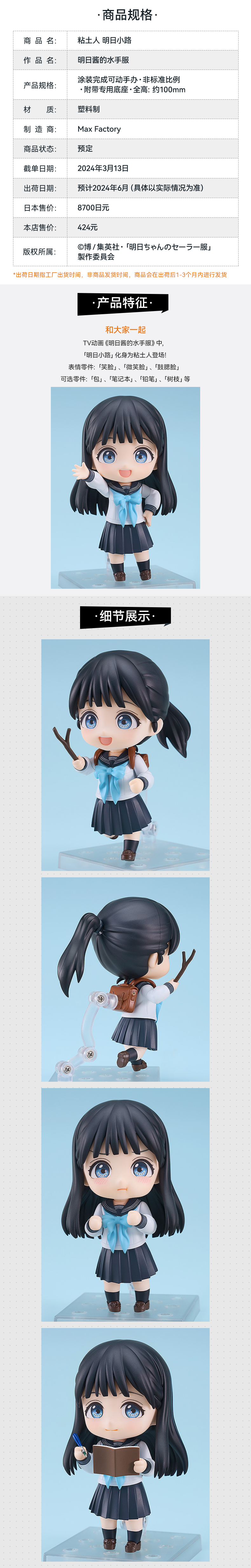 【GSC现货】粘土人 明日小路 明日酱的水手服