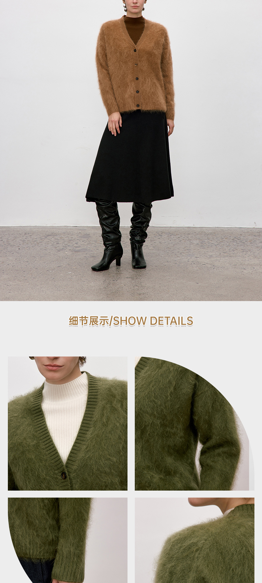 东黎 • 你本珍贵 山羊绒女士秋季拉毛V领开衫 5412